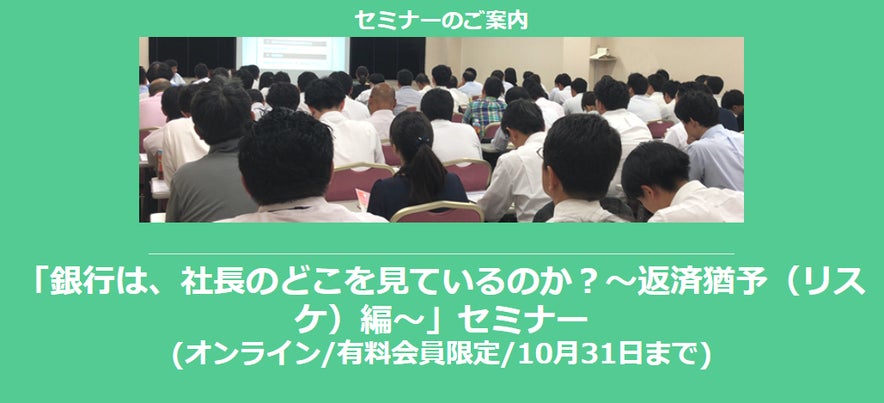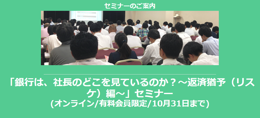 【10/27(木)より】「銀行は、社長のどこを見ているのか?~返済猶予(リスケ)編~」セミナーの配信開始【10/31まで】