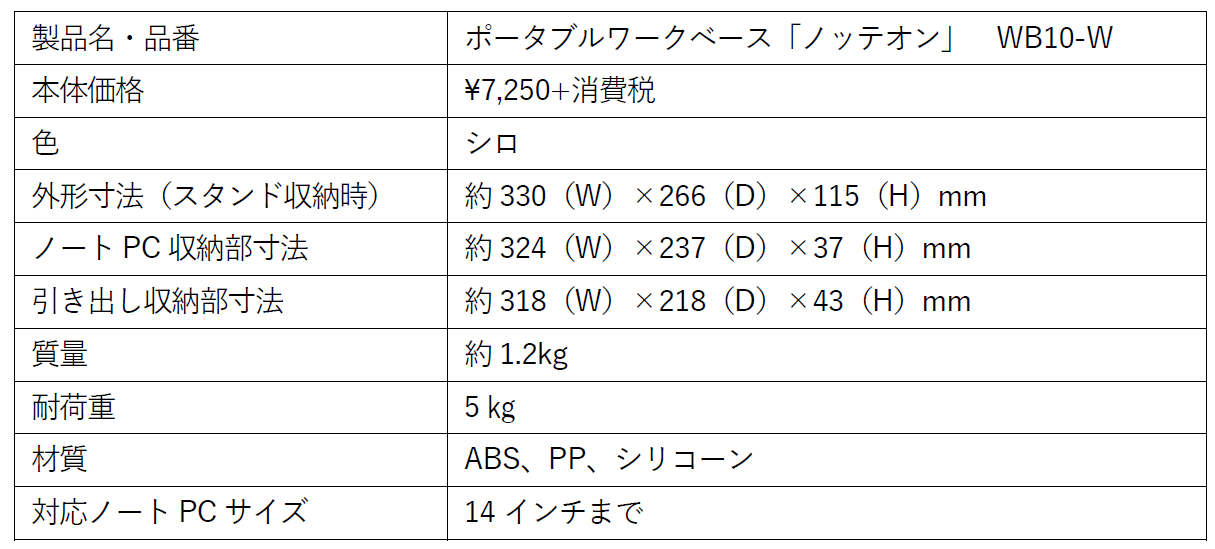 製品名・品番:ポータブルワークベース「ノッテオン」WB10-W