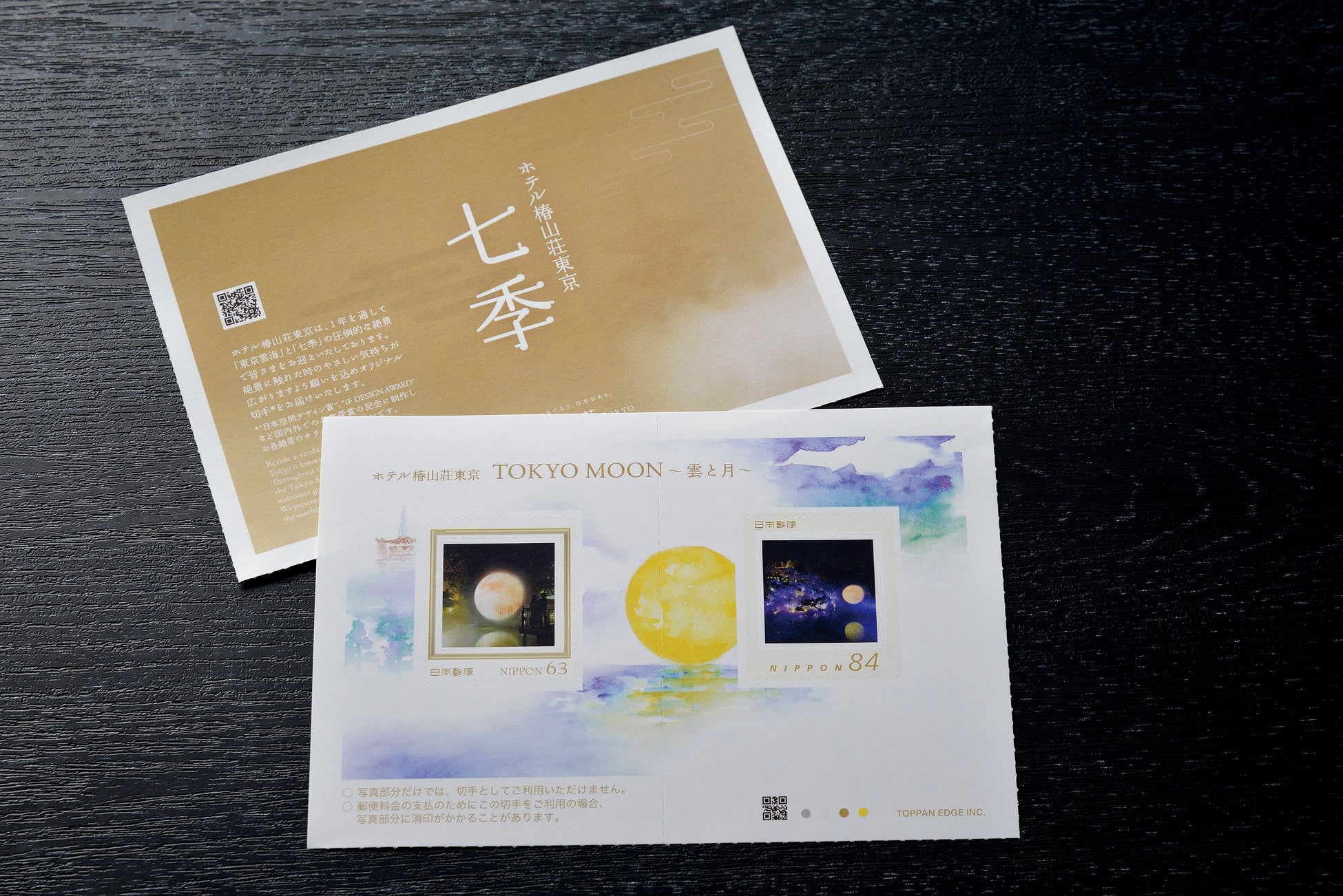 2024年5月17日より販売している、ホテル椿山荘東京オリジナル切手。すでに販売中の「東京雲海」と椿・桜・新緑・蛍・涼夏・秋・冬の「七季」のデザインに加え、庭園に出現する「TOKYO MOON」をデザインした二枚組切手を 2024年9月13日(金)より販売いたします。