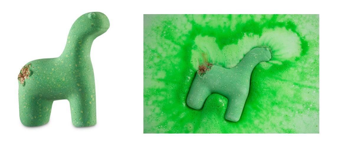 博物館よりも自宅のバスルームに展示したくなる恐竜の形をしたバスボムです。気持ちを落ち着けたい時は、ダマスクローズとラベンダーの香りでバスルームを満たしてくれるこのバスボムが大活躍しそうです。本商品には、ブルガリア産のリジェネラティブな栽培方法(不耕起栽培)で採取した豊かな香りのオーガニックラベンダーオイルを使用。