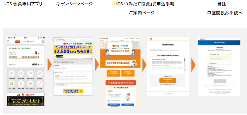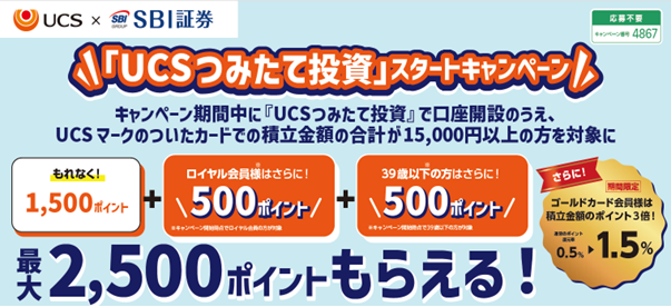 また、期間限定でSBI証券の口座開設と「UCSつみたて投資」のご利用で最大2,500円相当のポイントを加算するキャンペーンを実施します。