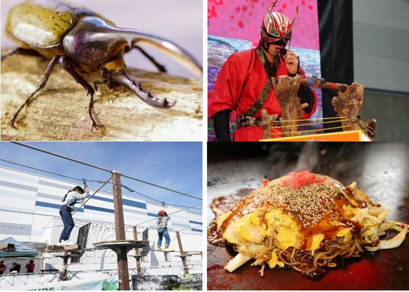 アウトドア・アトラクションパークでは「アスレチック体験」「トランポリン」や、こども達に大人気「闘う昆虫展」など様々なコンテンツを用意(一部有料)。さらに毎回大好評を頂いている