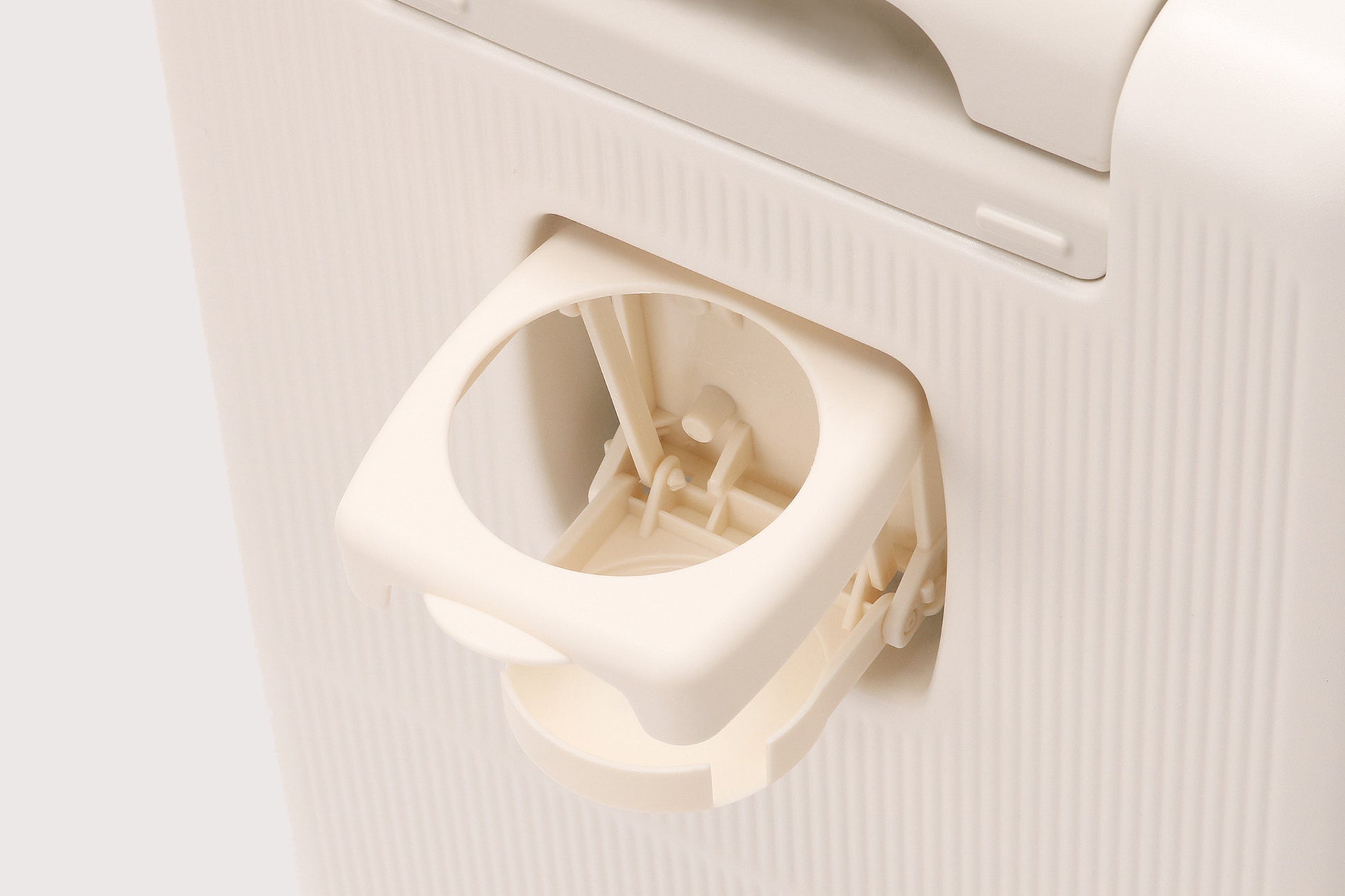背面にワンタッチで開閉可能な折りたたみ式「ボトルホルダー」を配置しました。