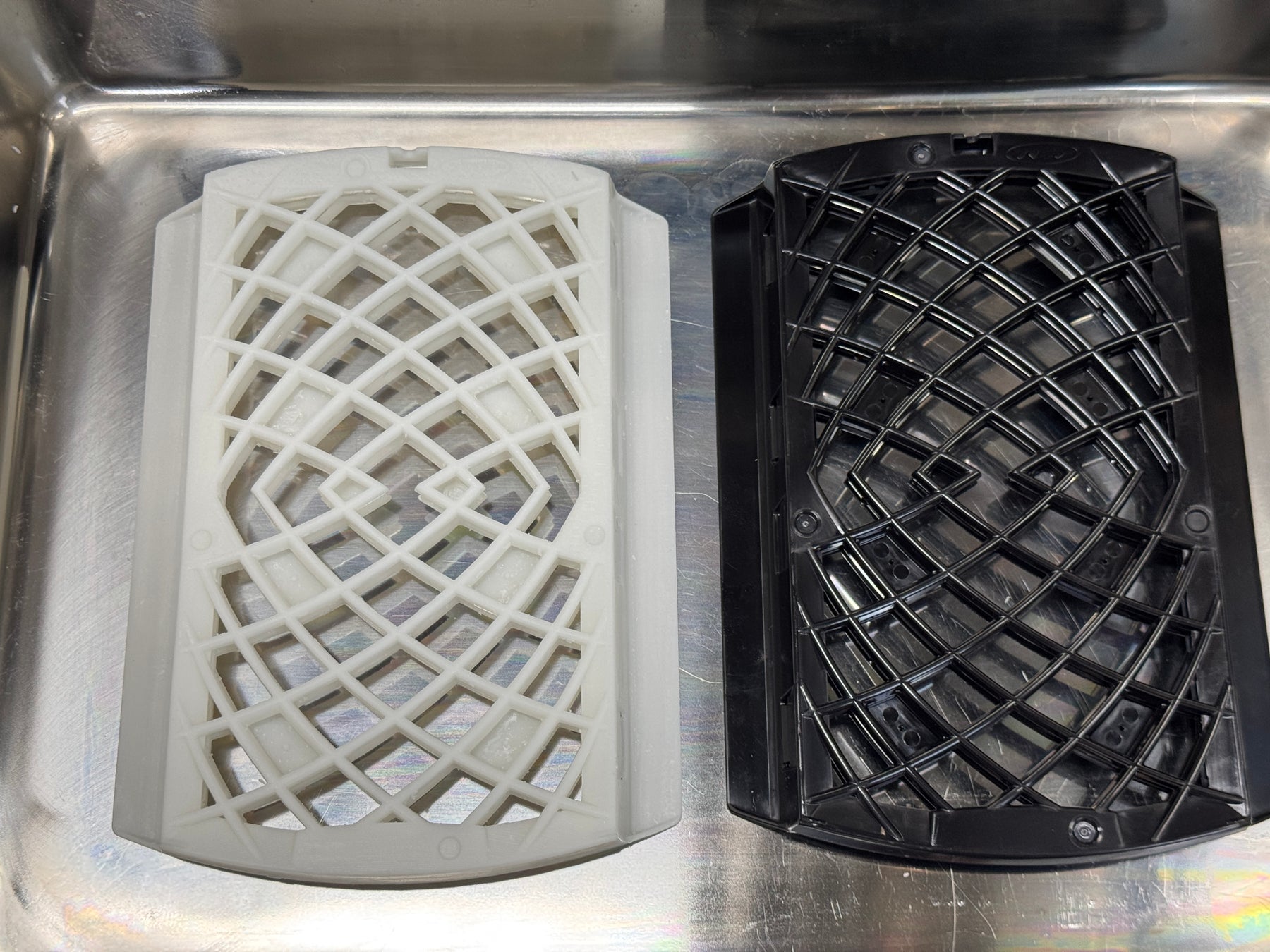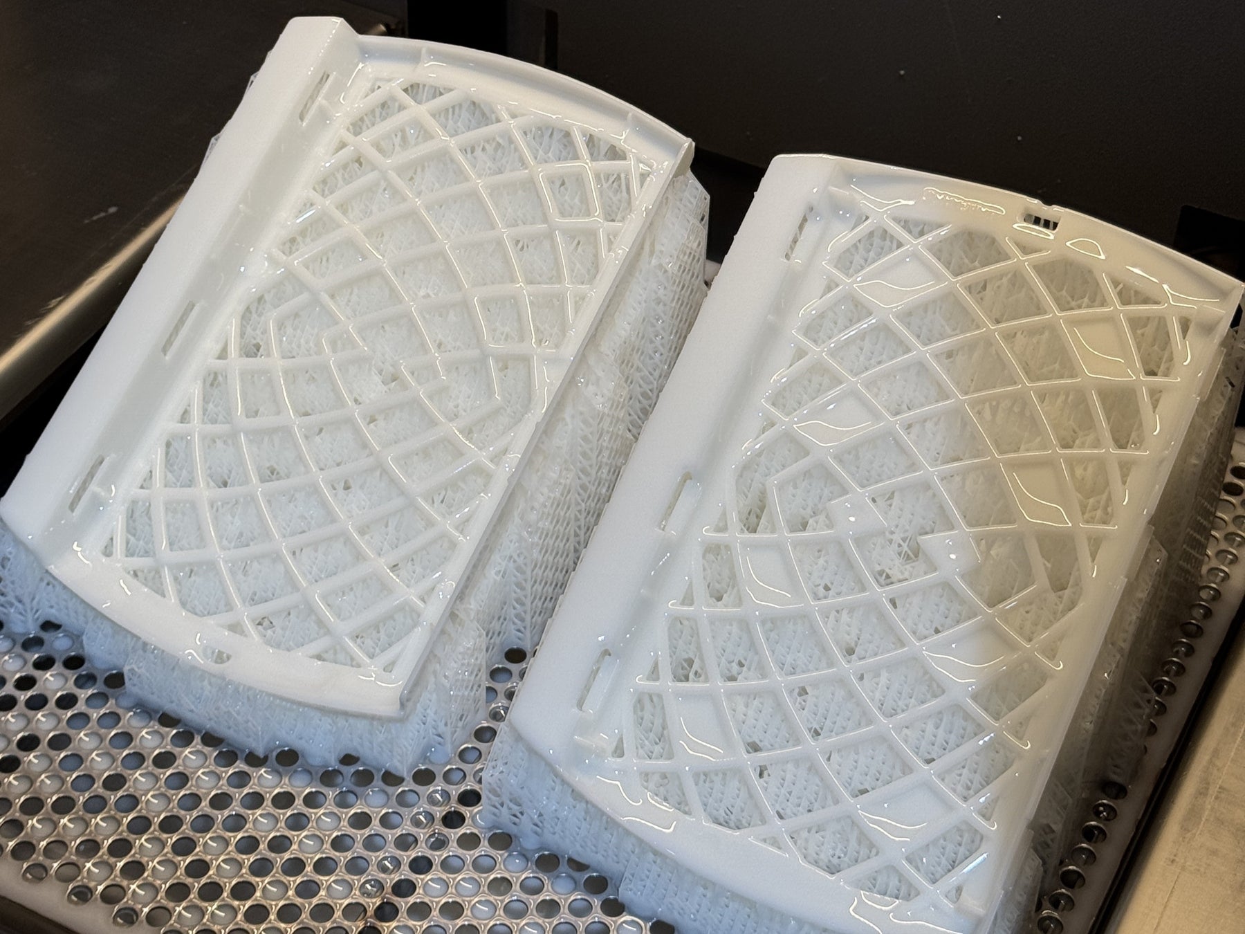 中空のボトルを造形する際には、以前のインクジェット方式に比べて材料コストが95%程度低減できました。造形時間も以前より50%ほど短縮され、後処理も溶剤に漬け置きするだけなので全体の工数も大幅に削減いただいています。材料コストも推計で年間90%近く削減できる見込みとのことです。