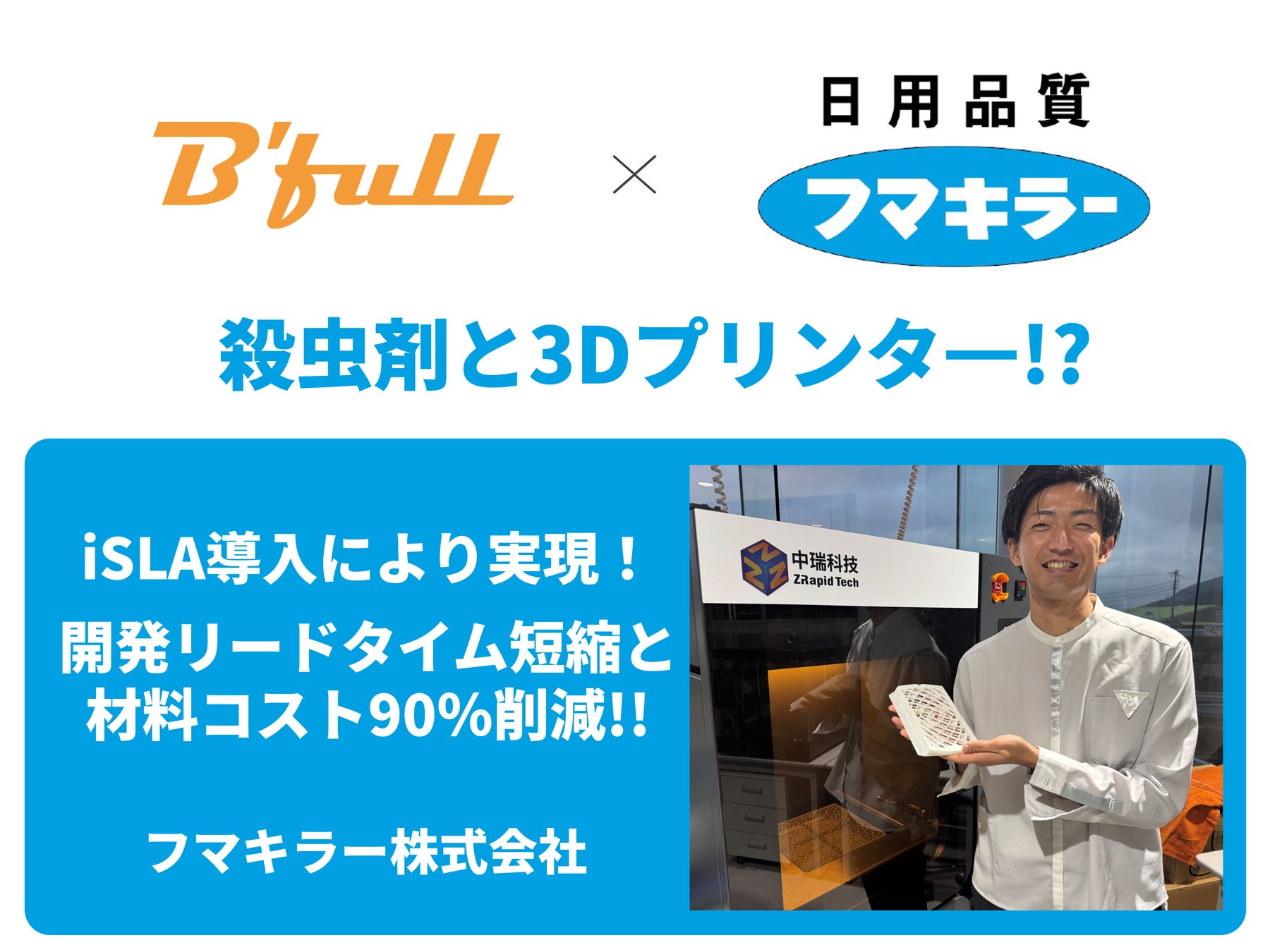 "光造形プロフェッショナル"株式会社Bfull(代表:前田直人 所在地:愛知県一宮市)が販売する産業用3Dプリンタ―「ZRapid iSLA byBfull」をフマキラー株式会社(代表:大下一明 所在地:東京都千代田区)が導入。検討の背景から導入後の成果などをインタビューし、記事を公開いたしました。