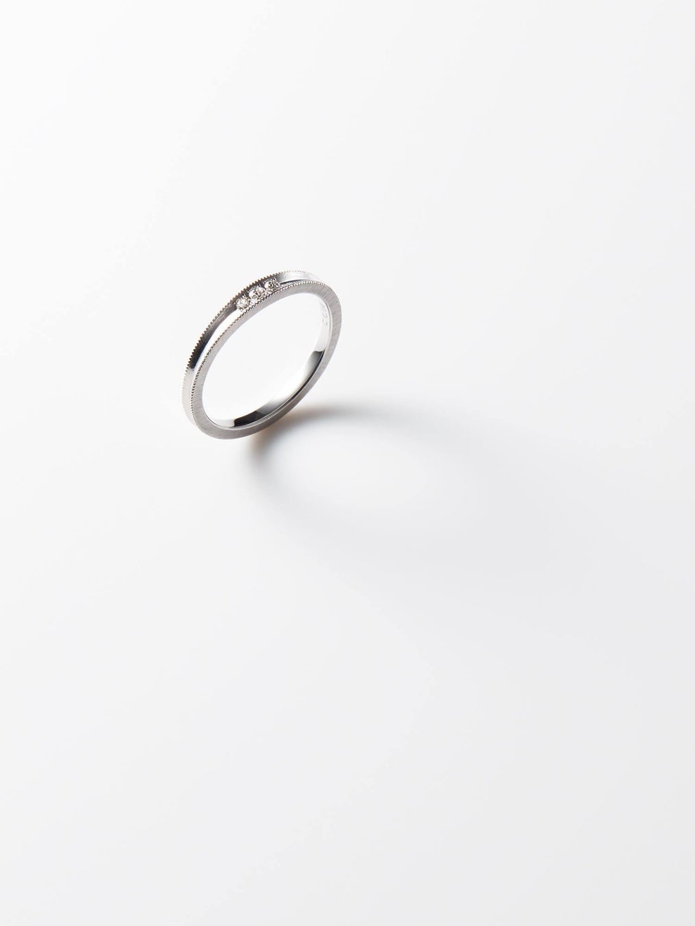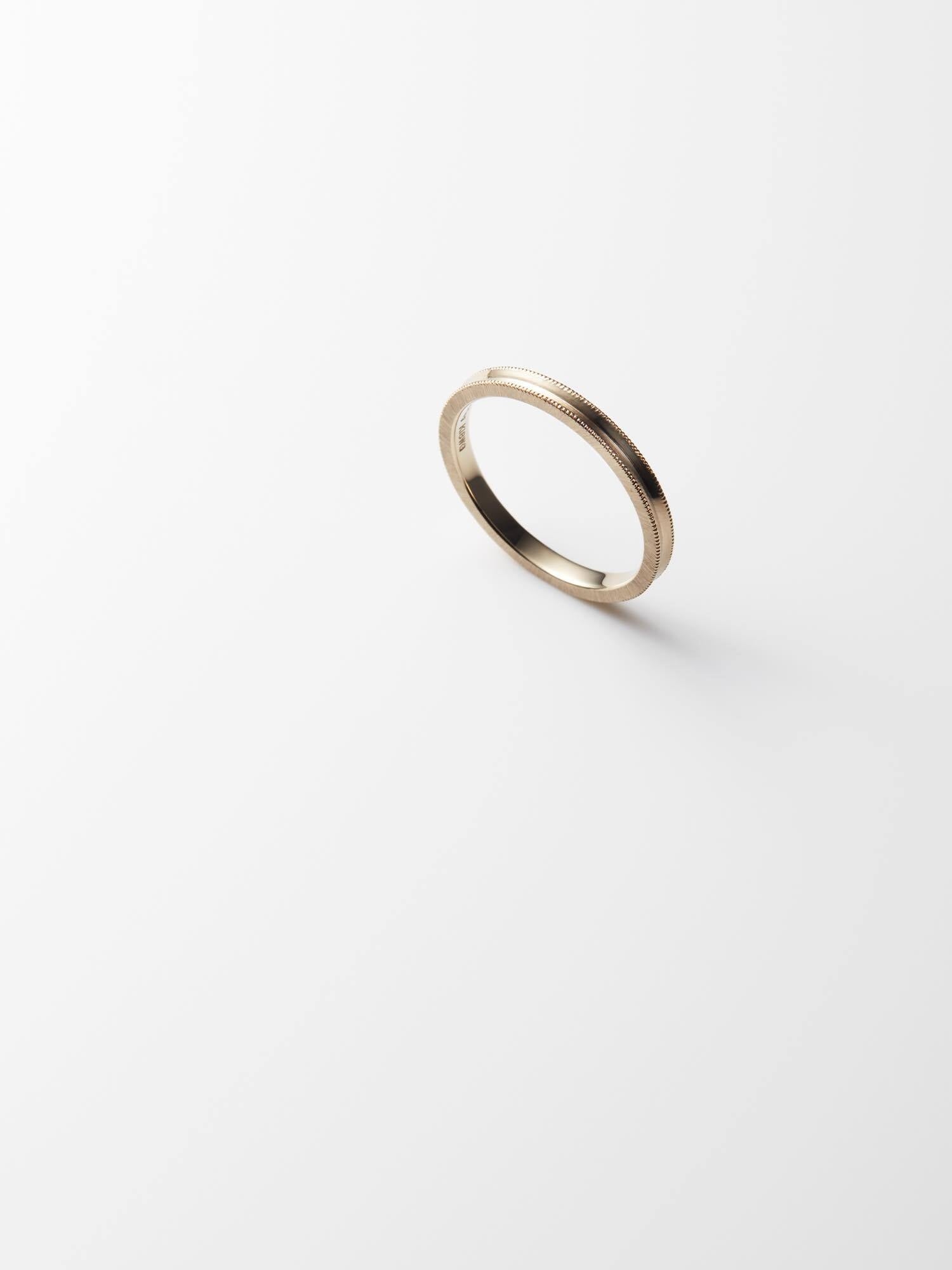 ラテン語で「千の粒」という意味のmillgrainを施したリング。「千」は沢山・子宝・永遠・長寿といった縁起の良い装飾として使われています。