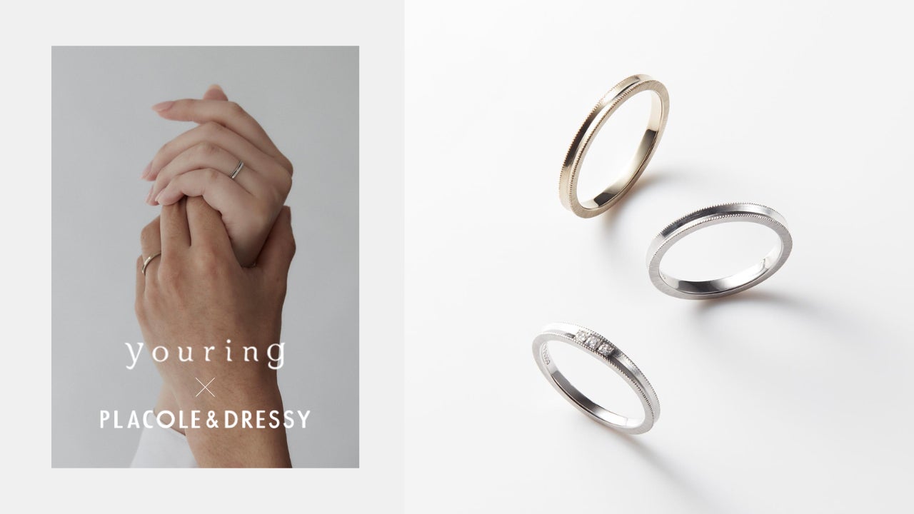 Instagram、TikTokを中心に、SNS総合フォロワー100万人を超えるアカウントを運営する「PLACOLE&DRESSY」がyouringとのコラボリング第2弾の発売を決定。コラボ第1弾は、youringの人気エンゲージリングデザインの限定モデルを発表。今回、第2弾として "ミライ(mill-ai)リング" と名前をつけたマリッジリングを「PLACOLE&DRESSY」の横浜・名古屋の店舗、オンラインECサイトDRESSY ONLINEにて限定販売を開始いたします。