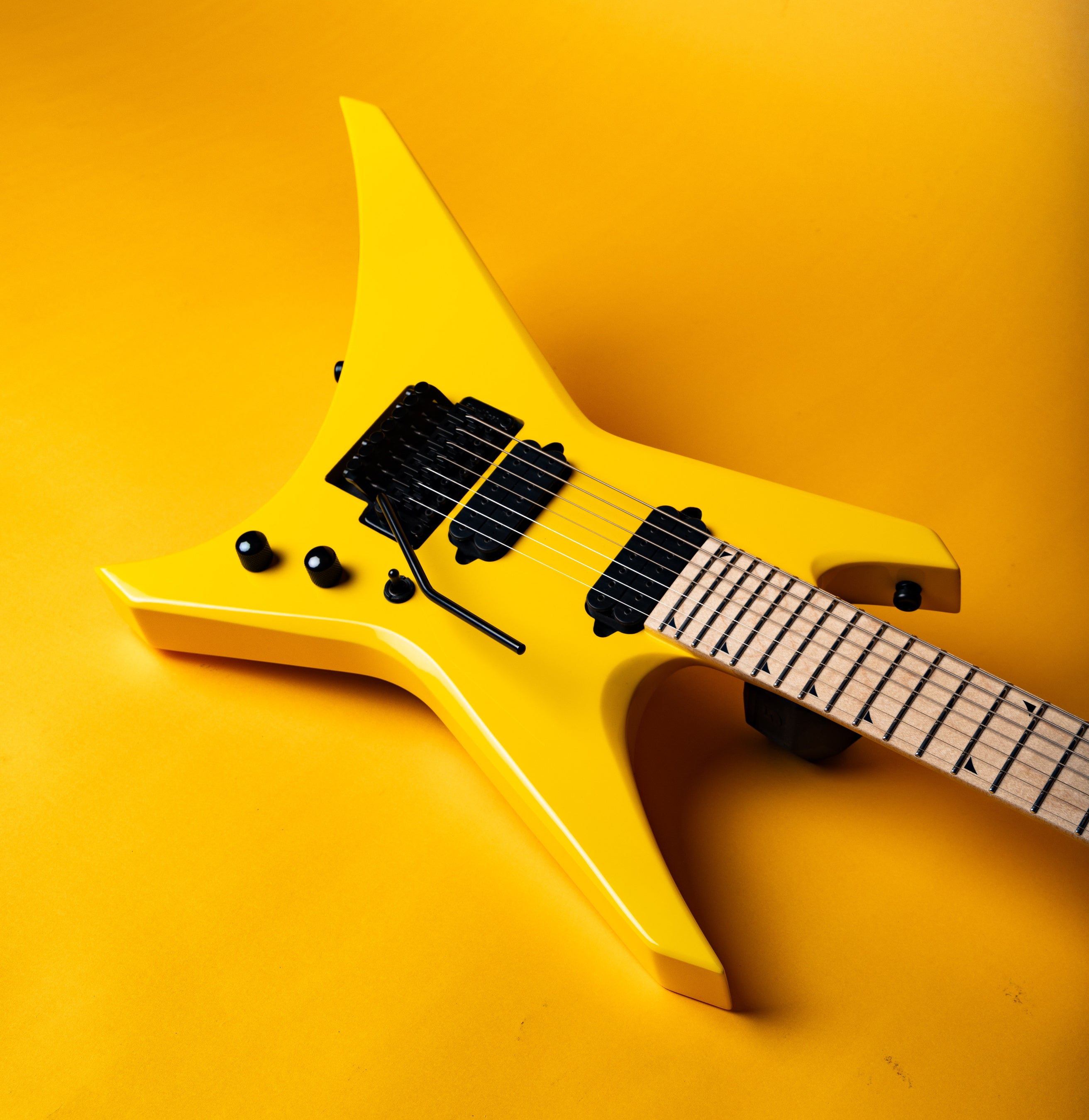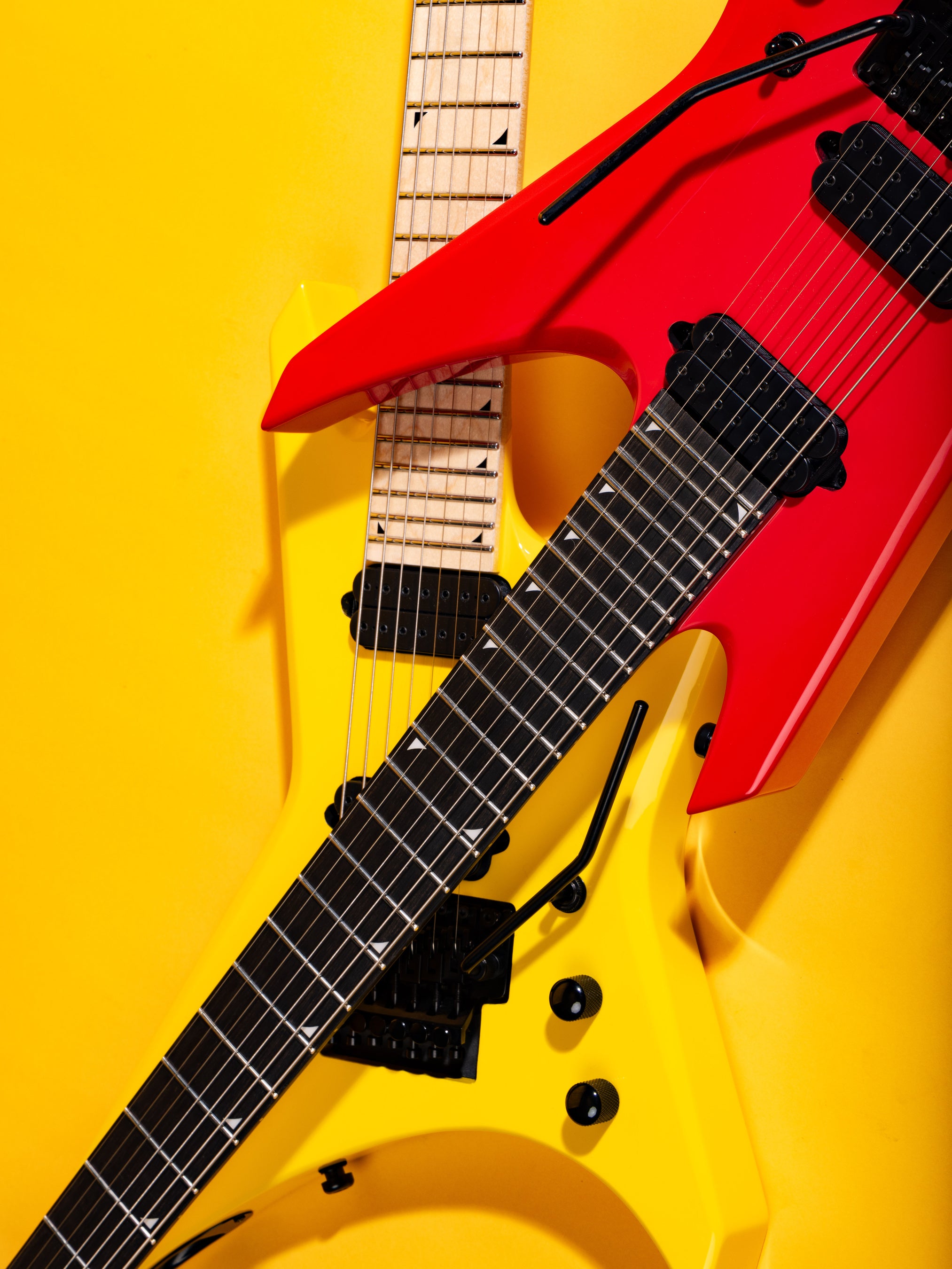 本機には、デイヴの特徴である多彩なコードテクスチャーを再現するカスタムDimarzio® Occult Classic™ピックアップを搭載し、タイトなローエンドから澄み渡るクリーントーンまで幅広いトーンを生み出します。また、7弦仕様のFloyd Rose® 1000ダブルロッキングトレモロは、優れたサスティンと煌めくトレモロの動きを提供し、アグレッシブなアーミングを行ってもチューニングを堅牢に維持できます。この他に、コントロールにはシングルボリューム&トーンと3ウェイトグルスイッチが搭載されています。