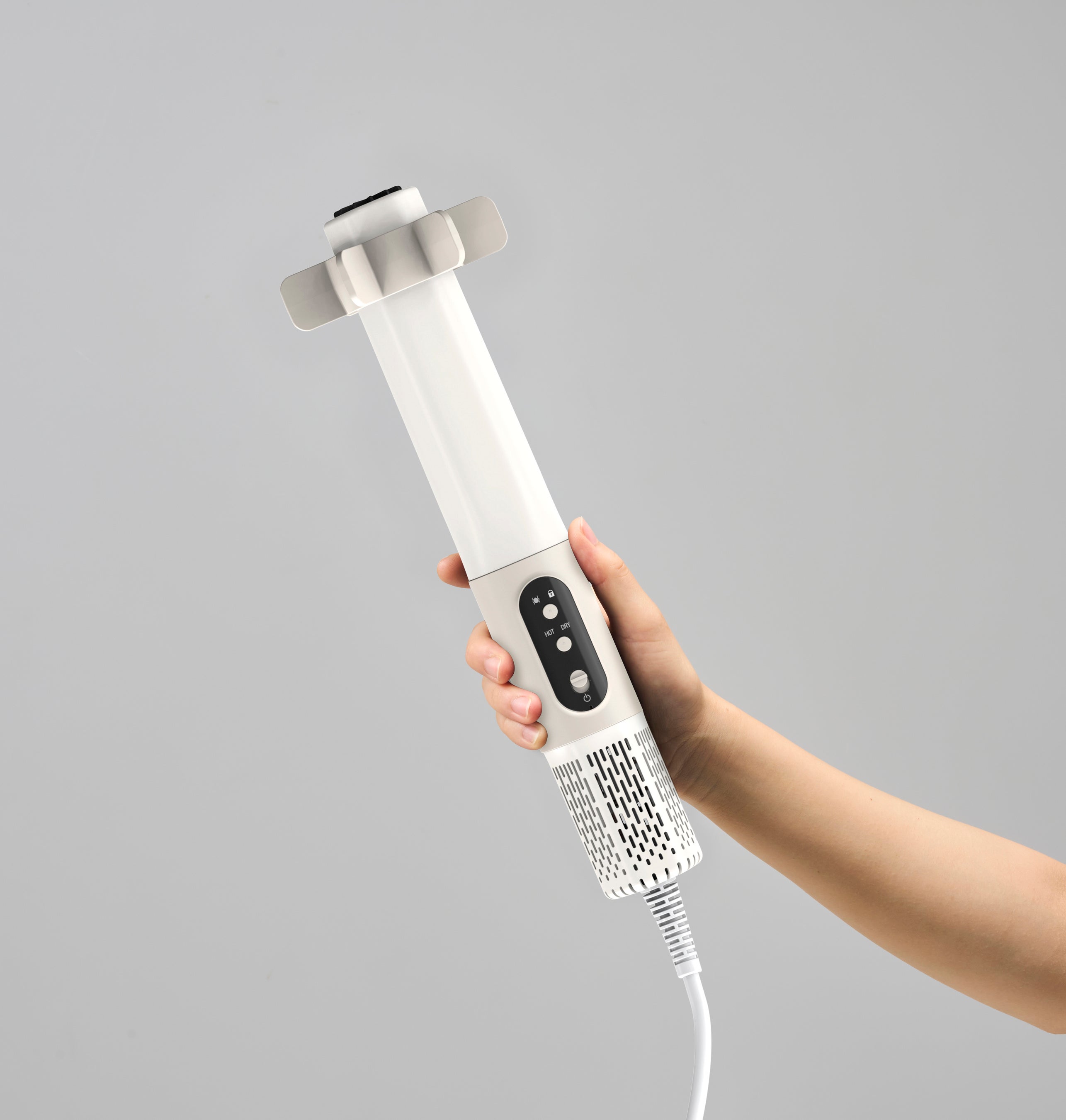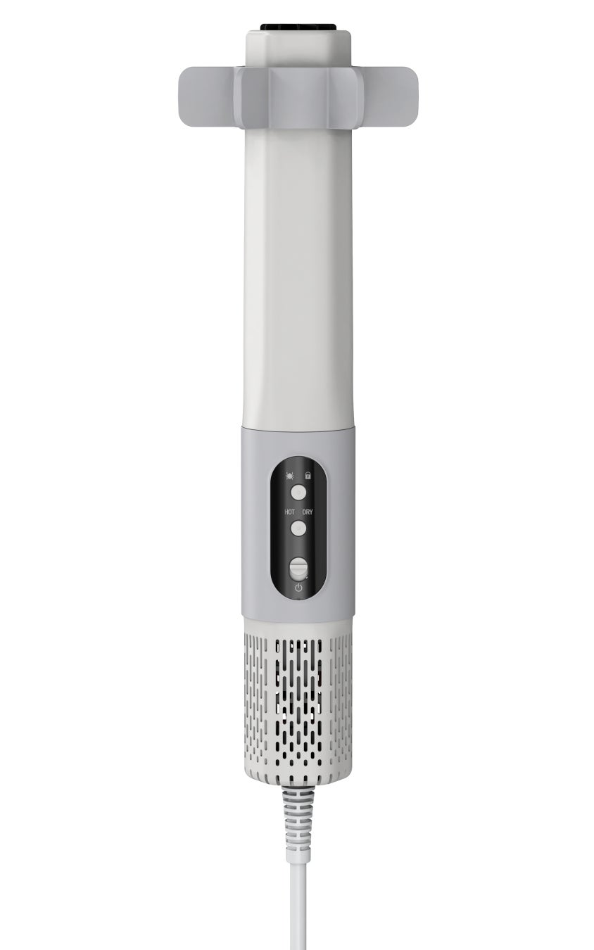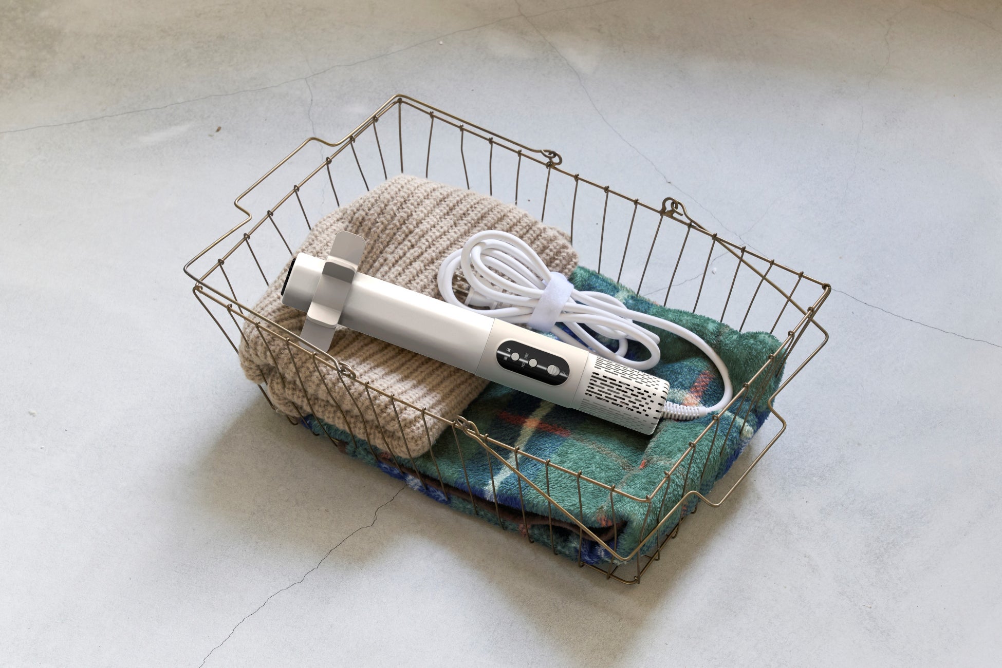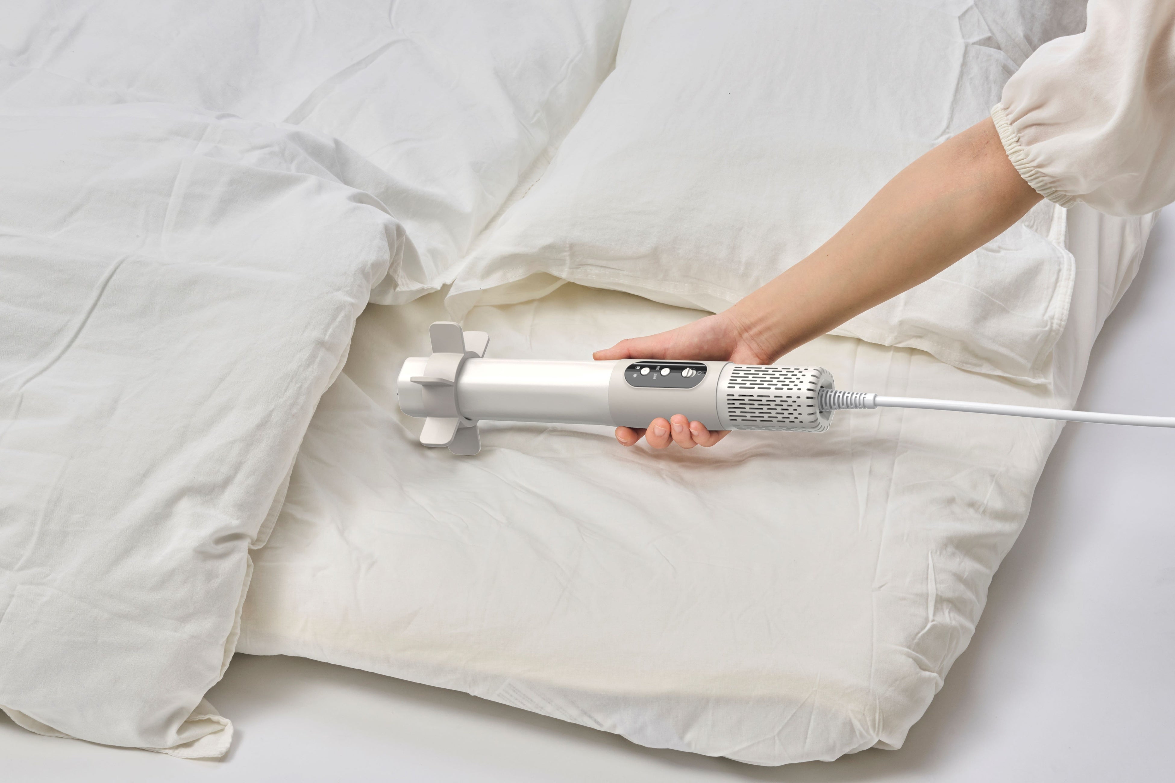 従来の布団乾燥機にあったホースを無くしたスティック型のウォーマーとしても使えるふとん乾燥機です。1分間11万回転する高速モーターから送り出すジェット温風で、ふとんに差し込むだけで湿気を飛ばし乾燥させ、ふとんをあたためます。