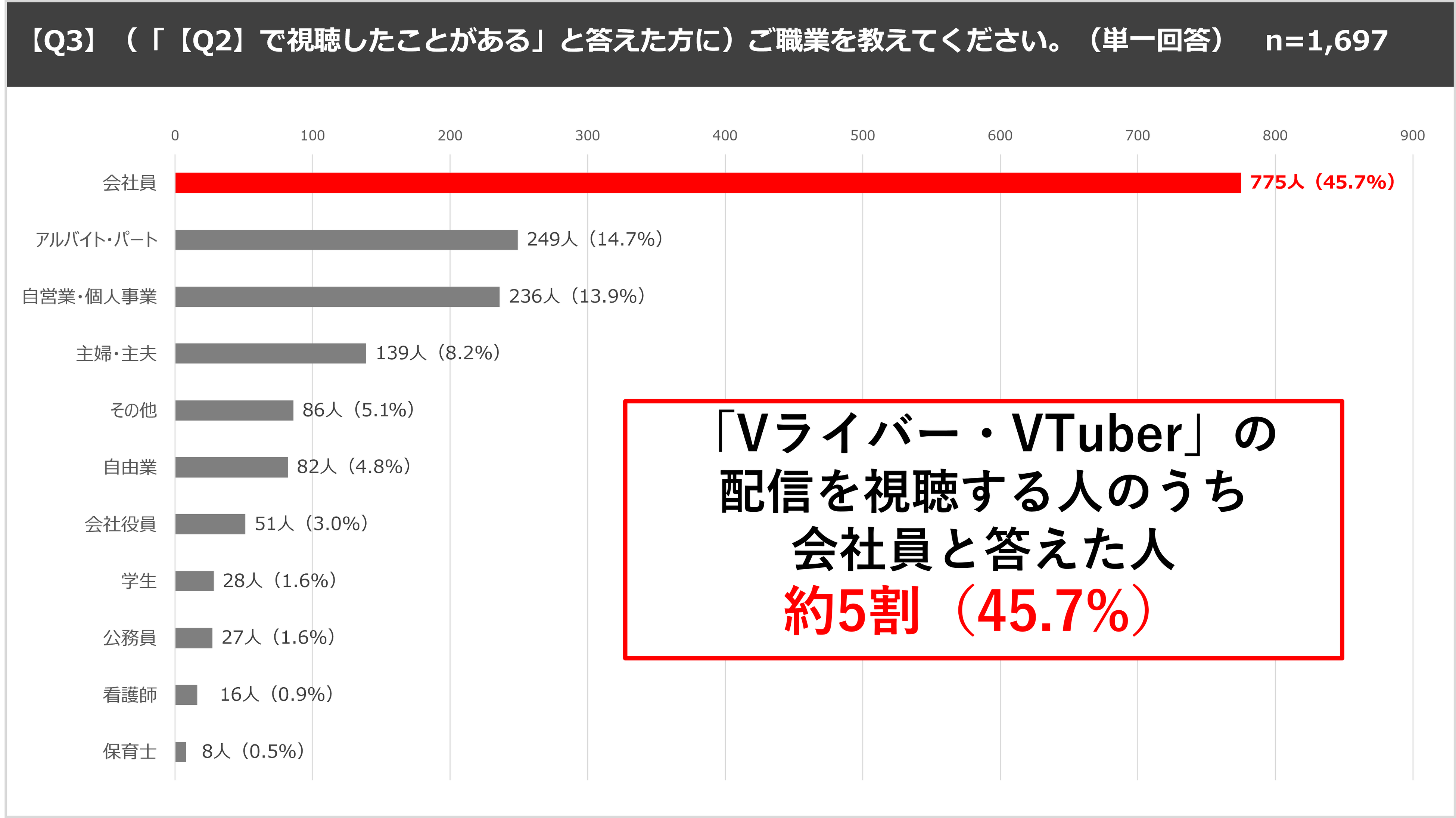 2. 「Vライバー・VTuber」を視聴している人のうち、約半数(45.7%)が「会社員」という結果に!