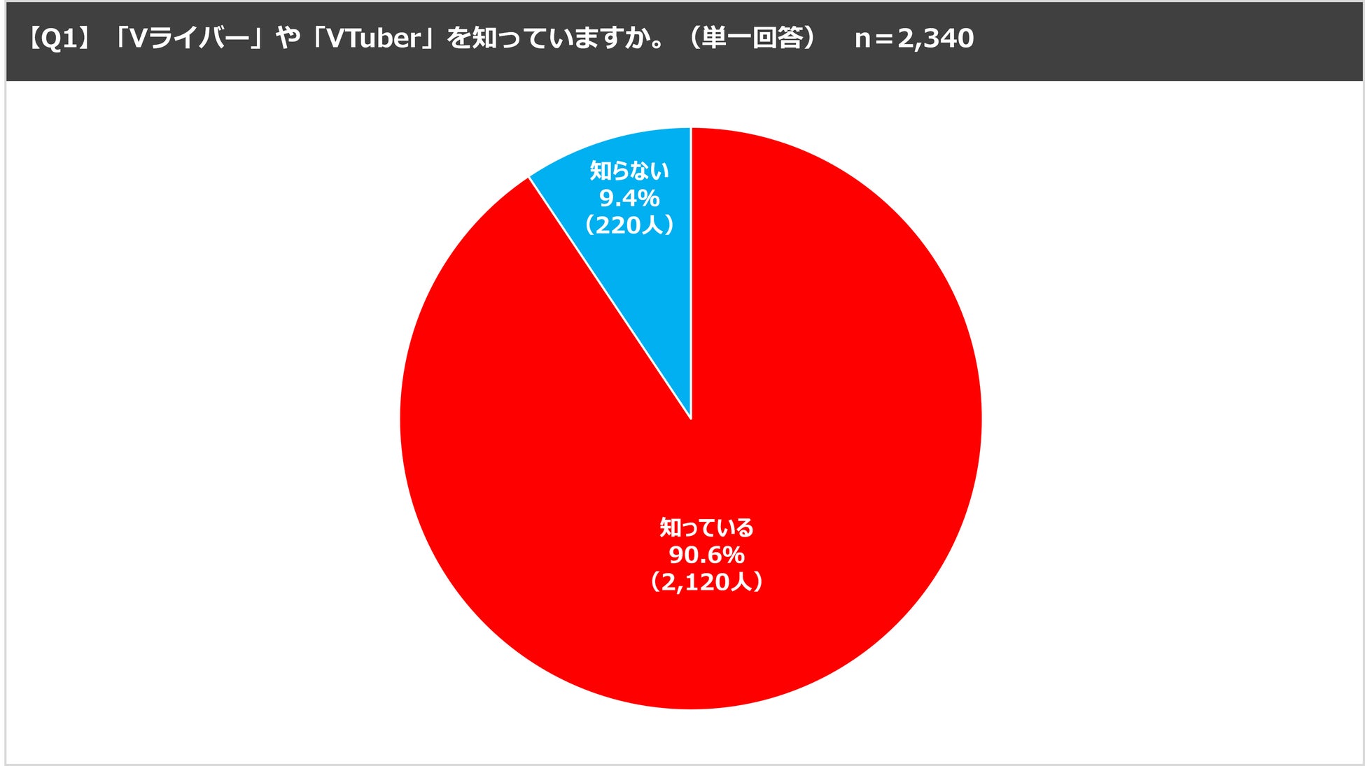 『「Vライバー」や「VTuber」を知っていますか。』という質問に対して、約9割(90.6%)が「知っている」と回答しました。