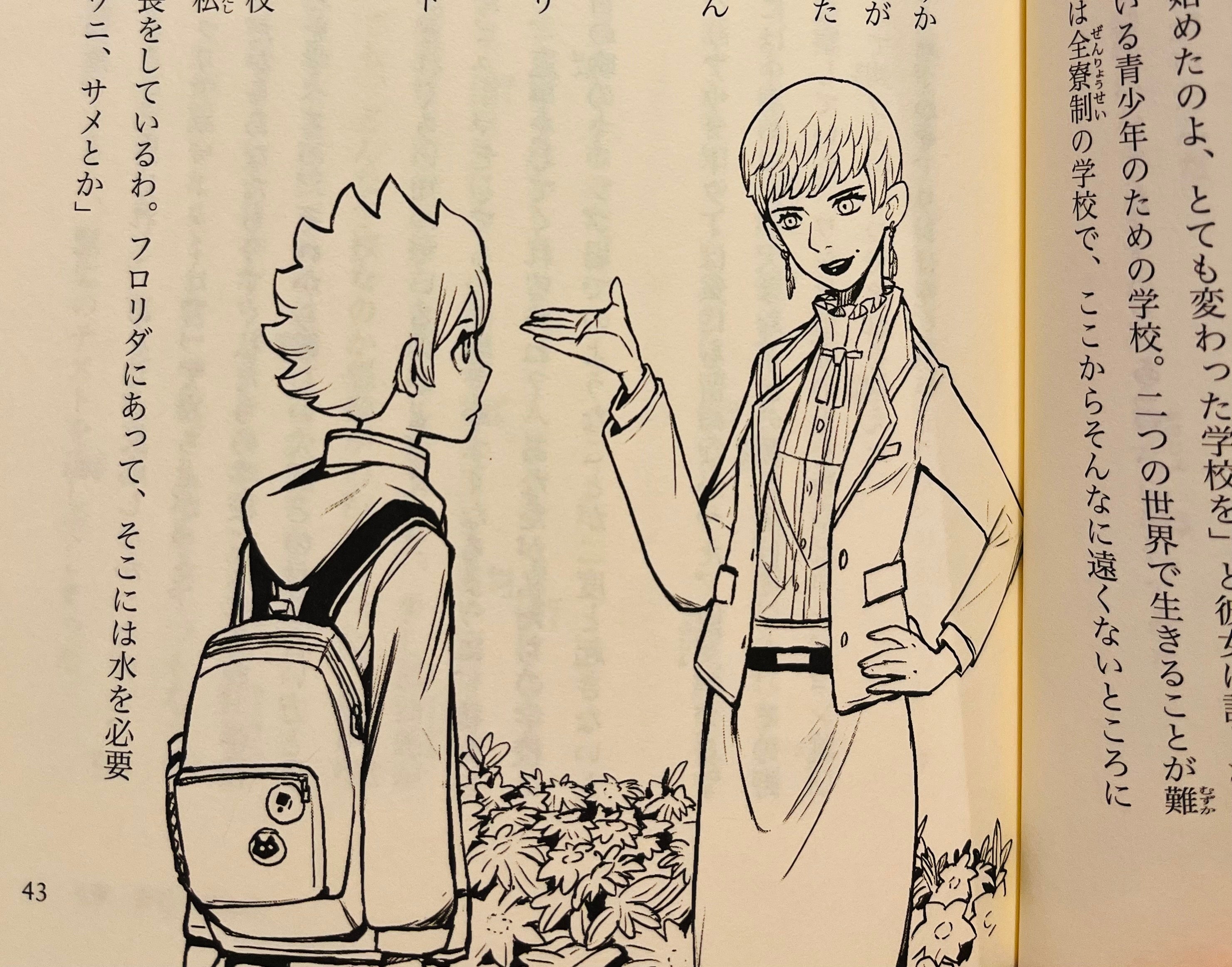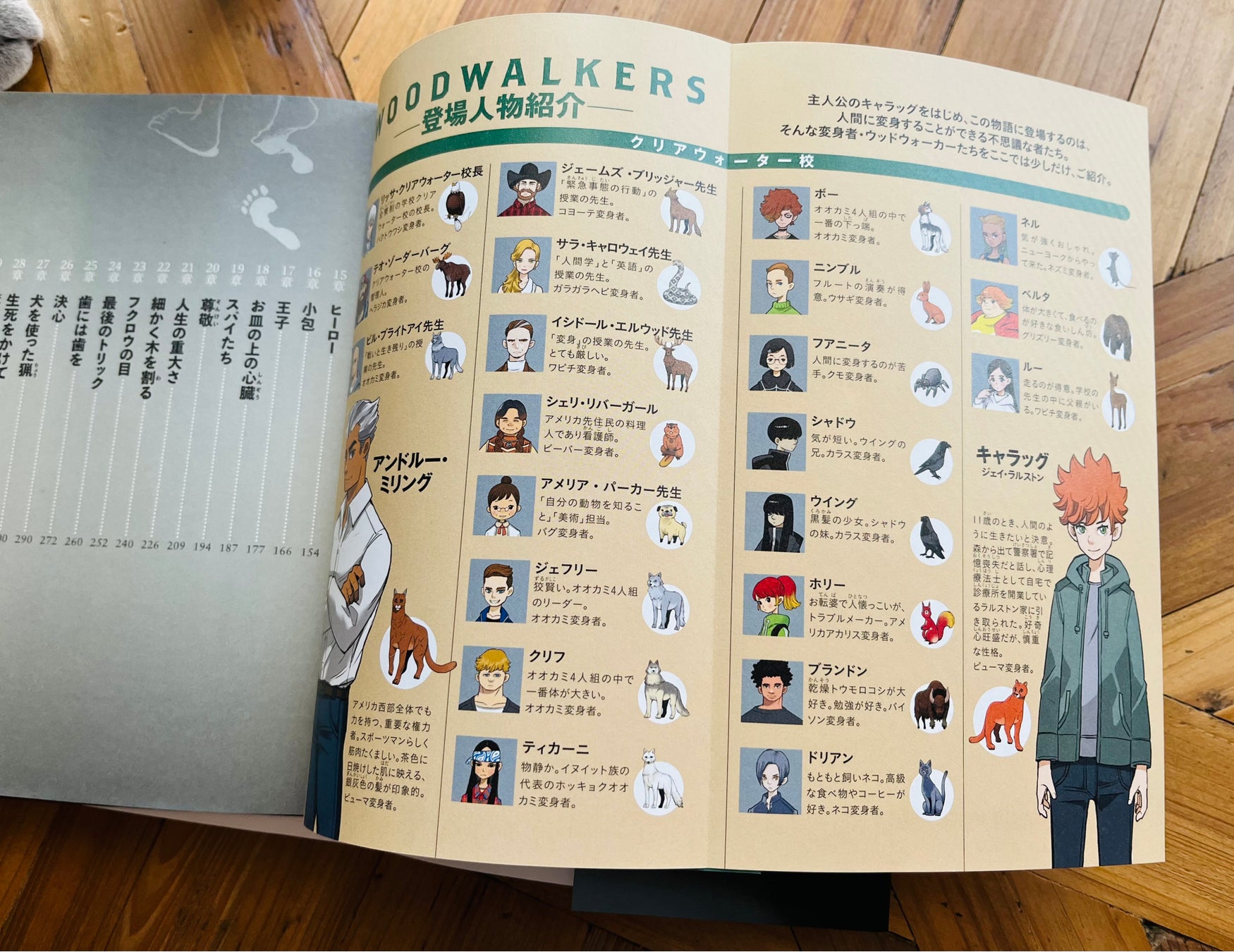ところが、キャラッグが想像していた以上に人間の生活は大変で不自由なことだらけ。学校でも完璧に浮いた存在になってしまったキャラッグの元に、突然、1羽のハクトウワシがやってきて教えてくれるのです。他にも人間に変身ができる動物たちがたくさんいること、そしてそんな動物たちを”ウッドウォーカー”と呼ぶことを……。そこから、ウッドウォーカー専用の全寮制学校”クリアウォーター校”に転入することになったキャラッグが宿敵!?のウッドウォーカーと出会う様子や楽しくて刺激的な学校生活の様子が1巻目では描かれます。