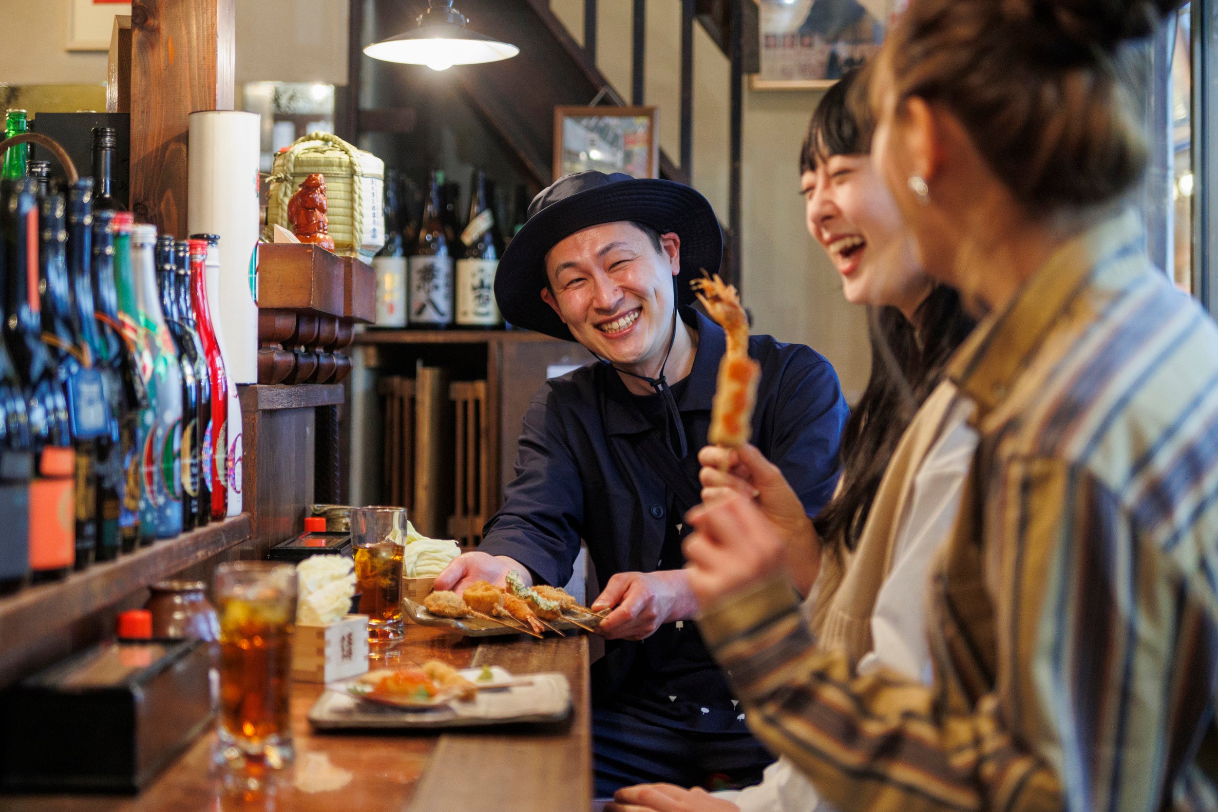 「OMOレンジャー」が大阪を代表するB級グルメ「串カツ」のお店を実際に食べ歩いて、おすすめなご近所を厳選してご案内します。初めてでは入りにくいお店も「OMOレンジャー」と一緒なら店主さんとのおしゃべりも、ばっちりサポートするので安心です。このツアー限定の「OMOセット」という特別メニューがある店舗もあり、頼むものに迷わないで済むのもノープラン旅行におすすめなポイントです。