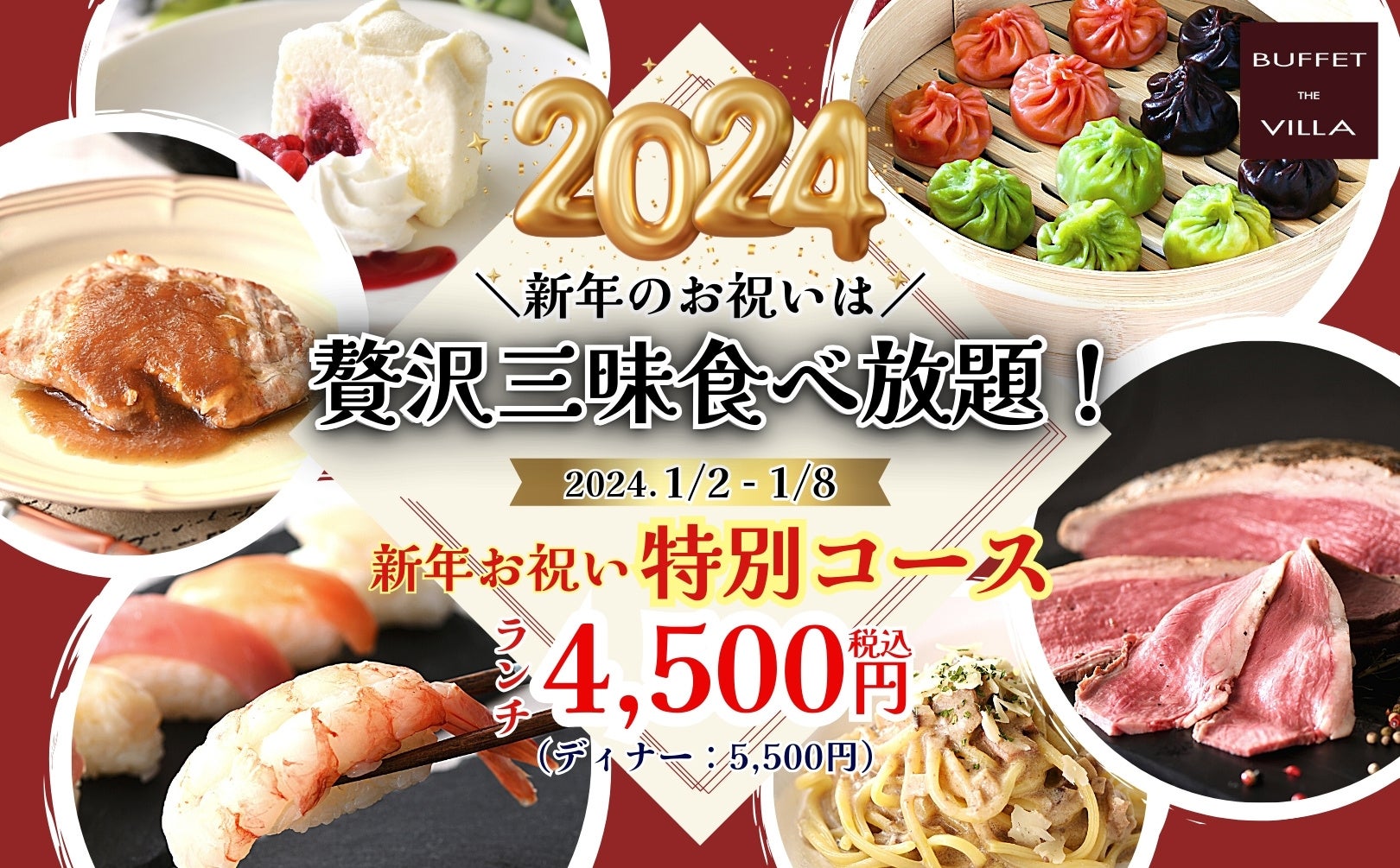 この度、新年のお祝いを華やかに彩る食べ放題プラン『新年お祝い特別コース』を2024年1月2日(火)~ 2024年1月8日(月)にてご提供いたします。