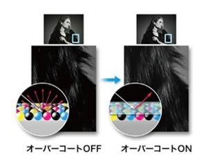 ライトグレーインクにより、着弾したインクの段差を少なくし、表面の光沢を最適化するブラック・エンハンス・オーバーコート機能を搭載。重厚感のある「黒」を表現できる他、反射光によって本来とは違った色味が付いて見える「ブロンズ現象」を抑制することで、飾る場所や光源の影響を抑え、作品そのものの美しさを伝えることができます。