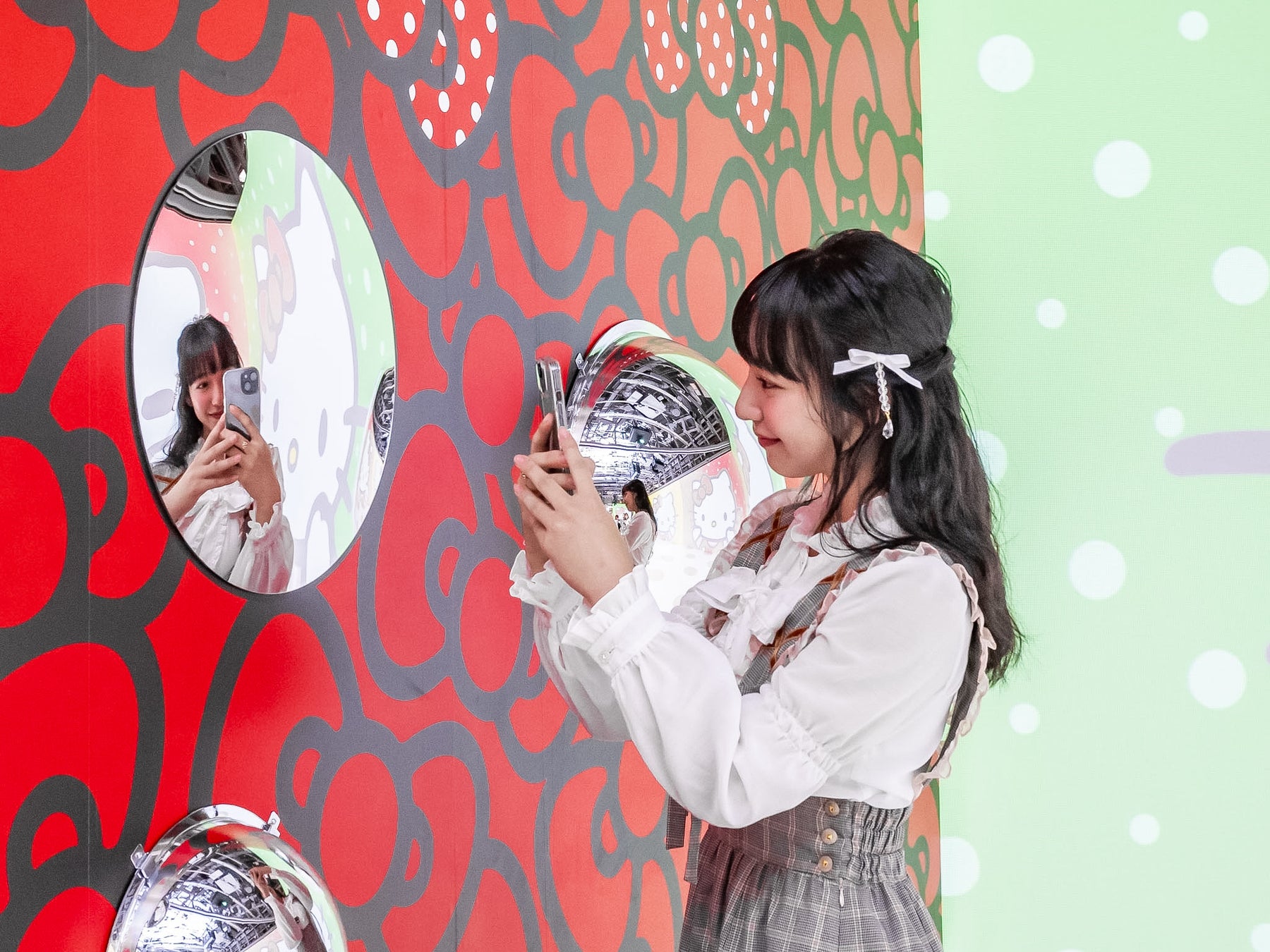 SHIBUYA109渋谷店 8階で開催中のPOP-UP SPACE『HELLO KITTY FASHION ROOM』では、すずさんが2つのセルカスタジオを体験。スタジオ備え付けのプロップスの中から、ハローキティのぬいぐるみとカチューシャを選び、すずさん考案のポーズでおすすめの撮り方を披露しました。自身のお部屋について聞かれると、「色ものを集めるのが好きで、自分の好きなものがつまった最高の部屋です」と話しました。会場内には、11月1日(金)から東京国立博物館 表慶館で開幕する展覧会「Hello Kitty展 –わたしが変わるとキティも変わる–」で展示するブースの一部も特別に公開しています。
