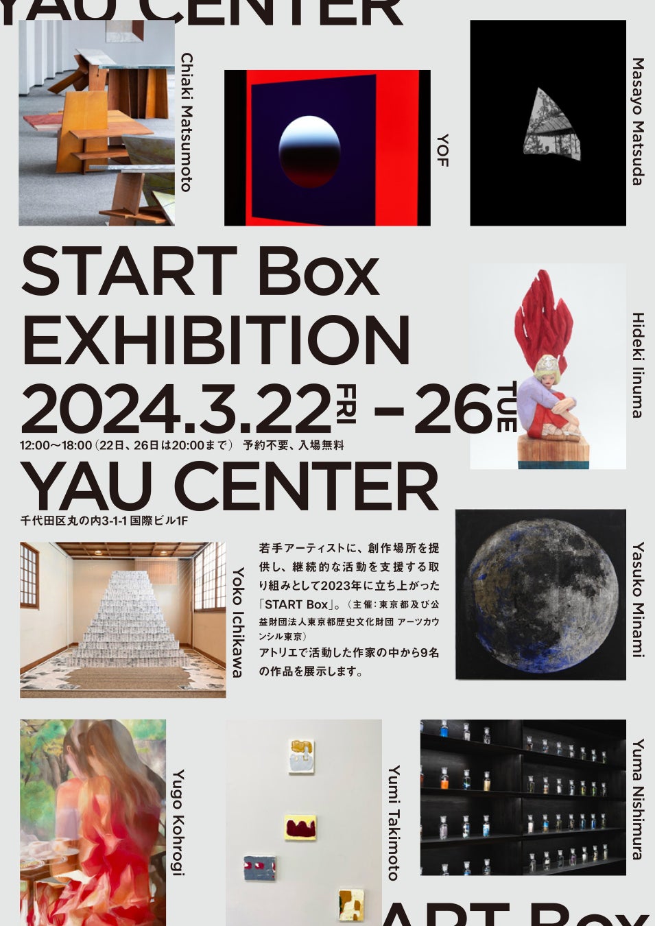 この度、活動するアーティストの作品発表の機会として、有楽町アートアーバニズムYAUの協力を得て、「START Box EXHIBITION」を開催します。ぜひご来場ください。
