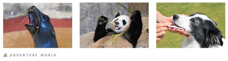 (1)アドベンチャーワールド公式SNS(Twitter、Facebook、instagram等)で動物たちの歯や口の豆知識や健康について学べる動画や写真を毎日お届け!