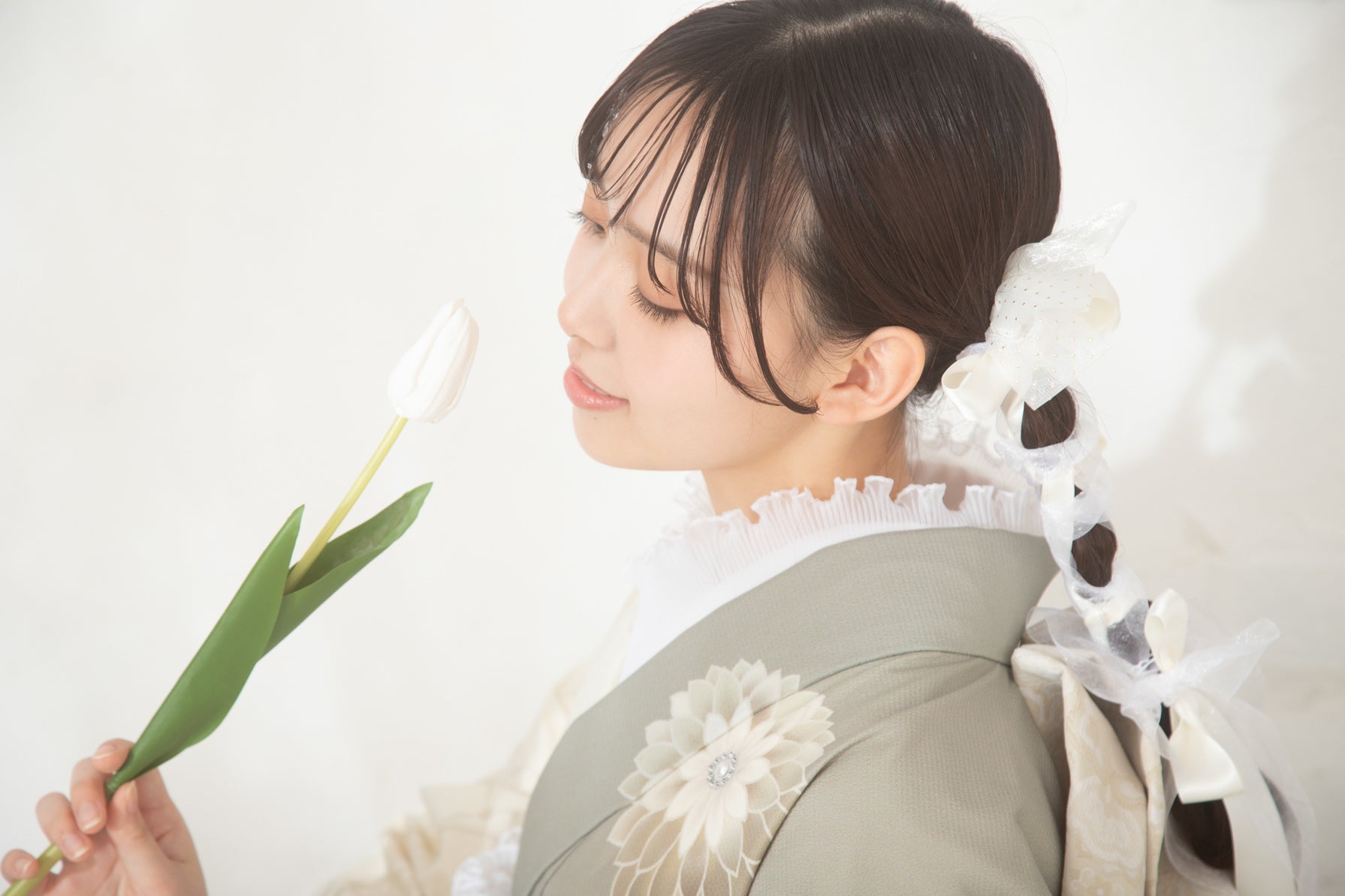 淡カラーの振袖をリボンとフリルでガーリーにスタイリング「Girly×soft」