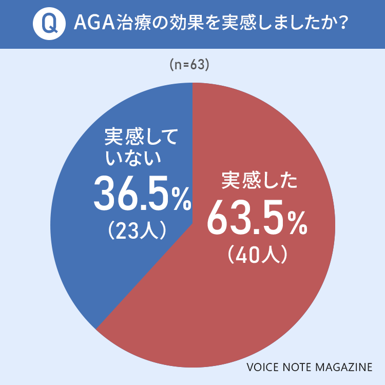 AGAの治療を受けたことがある63人に、AGA治療の効果を実感できたか聞きました。