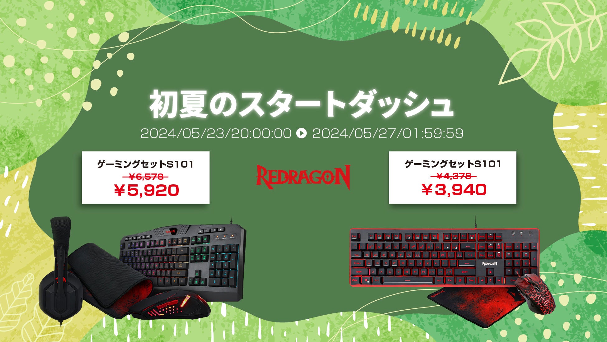 楽天「Show !t」は5月23日20時開始のお買い物マラソンに参加しポイント10倍プレゼント。REDRAGONのマウスやマウスパッド、ヘッドセット、キーボードなどスターターセットをセール価格で販売。