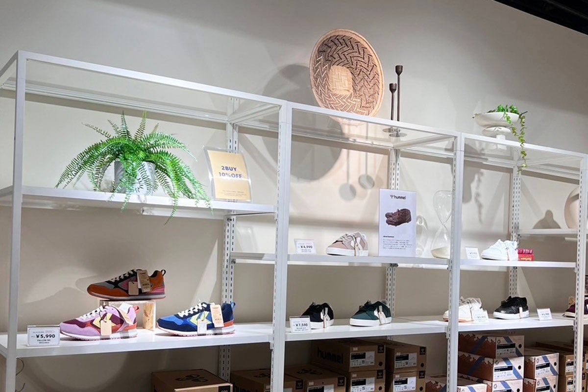ホワイトを基調とした落ち着いた雰囲気の店内には、スポーツシーンに活躍するウェアに加え、デイリーにも着用できる北欧らしいカラーリングのウェアやスニーカーなど、幅広いアイテムを展開しています。