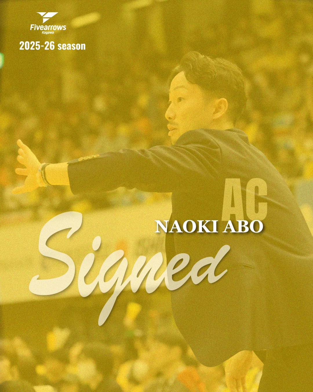 このたび香川ファイブアローズでは、阿保直樹アシスタントコーチとの2025-26シーズンの契約継続が決まりましたので、お知らせいたします。