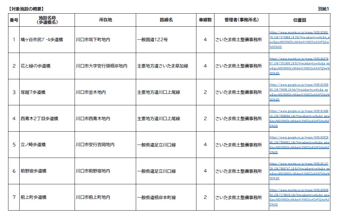 【埼玉県】埼玉県管理道路初!「歩道橋」のネーミングライツについて、愛称の命名権者を公募します!