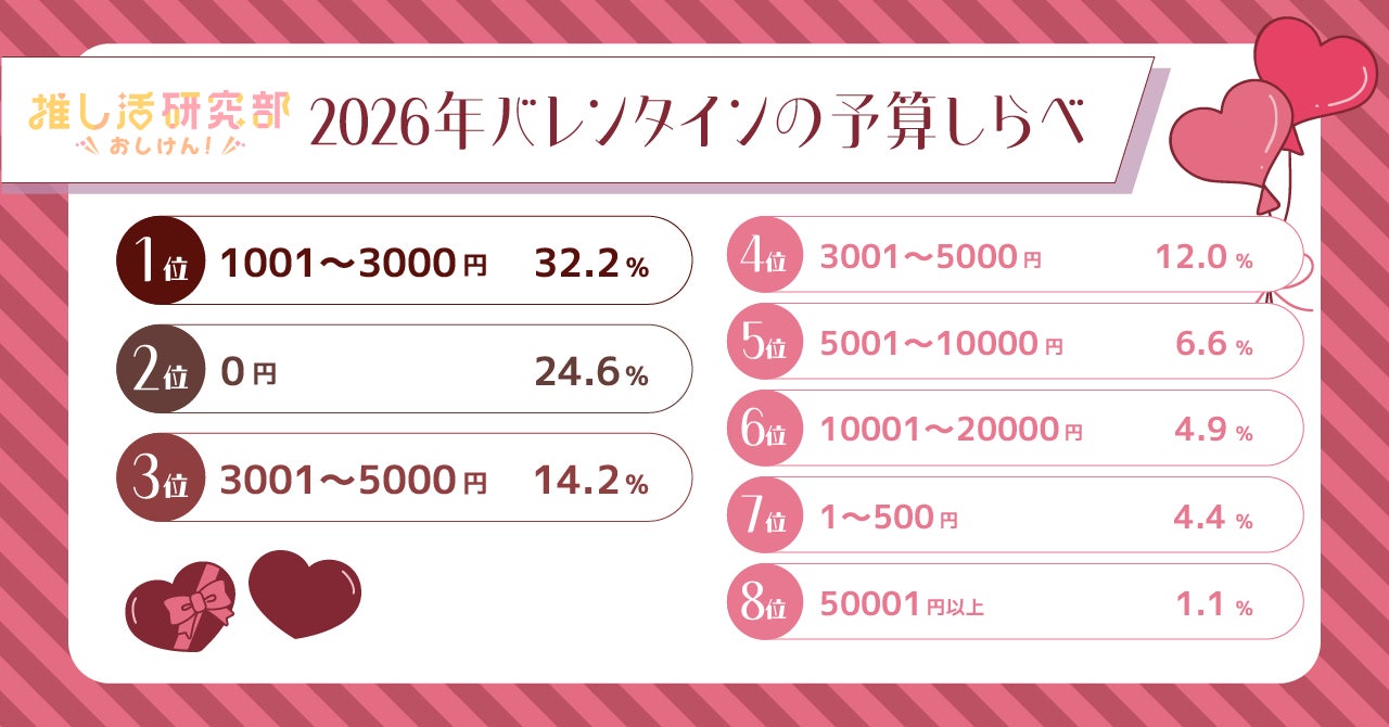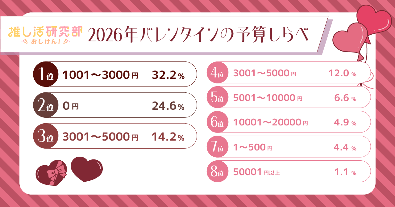 バレンタインにチョコを渡したい推しは誰?0円から5万円以上まで、推し活バレンタインを予算別に調査