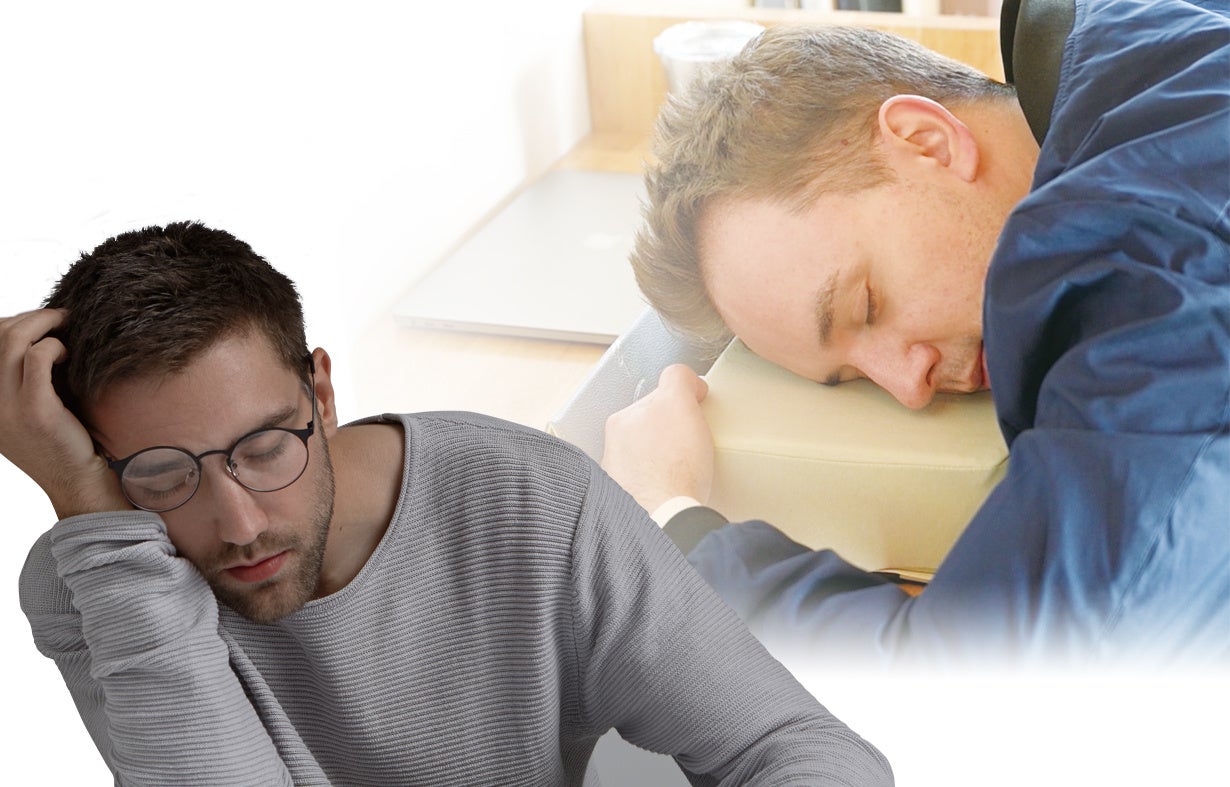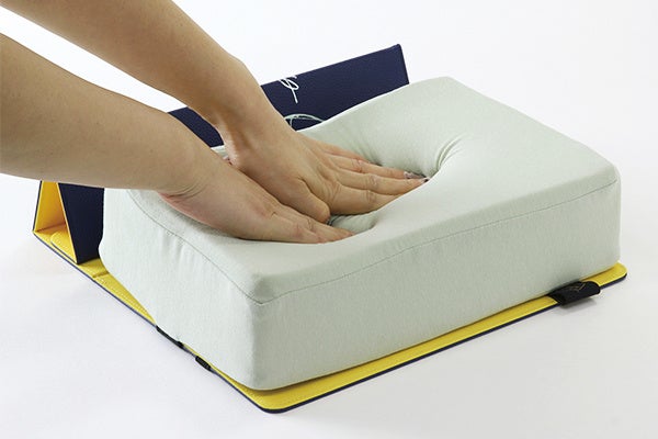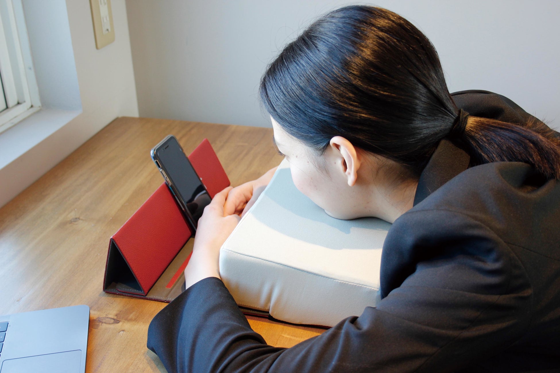 その一方で、オフィスでも在宅ワークでも、うまく仮眠を取り入れたいけれど、デスクに座ったまま頭を後ろに仰向けに眠ると首を痛めたり、オフィスでは眠っている顔を見られてしまうのも恥ずかしいという意見があるのが現実です。かといって、手を枕にしてうつ伏せに眠っていると、顔に寝跡が残ってしまうことも。