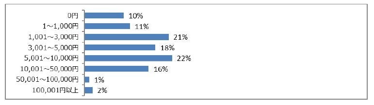 ▼「スポーツの秋」にかけられる費用帯