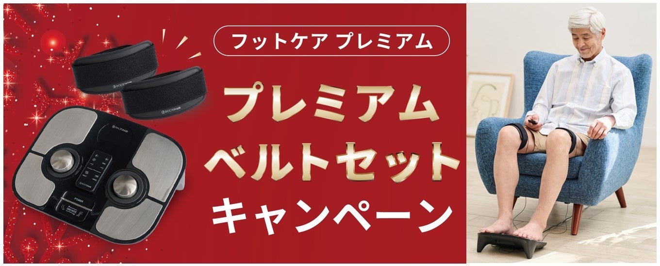 今回『ドクターエア』では、【フットケア プレミアム】に、別売りの太ももベルト【フットケア プレミアム ベルト(9,900円|税込)】をセットにした数量限定の特別仕様【フットケア プレミアム スペシャルエディション】を29,700円(税込)の本体価格にて販売!