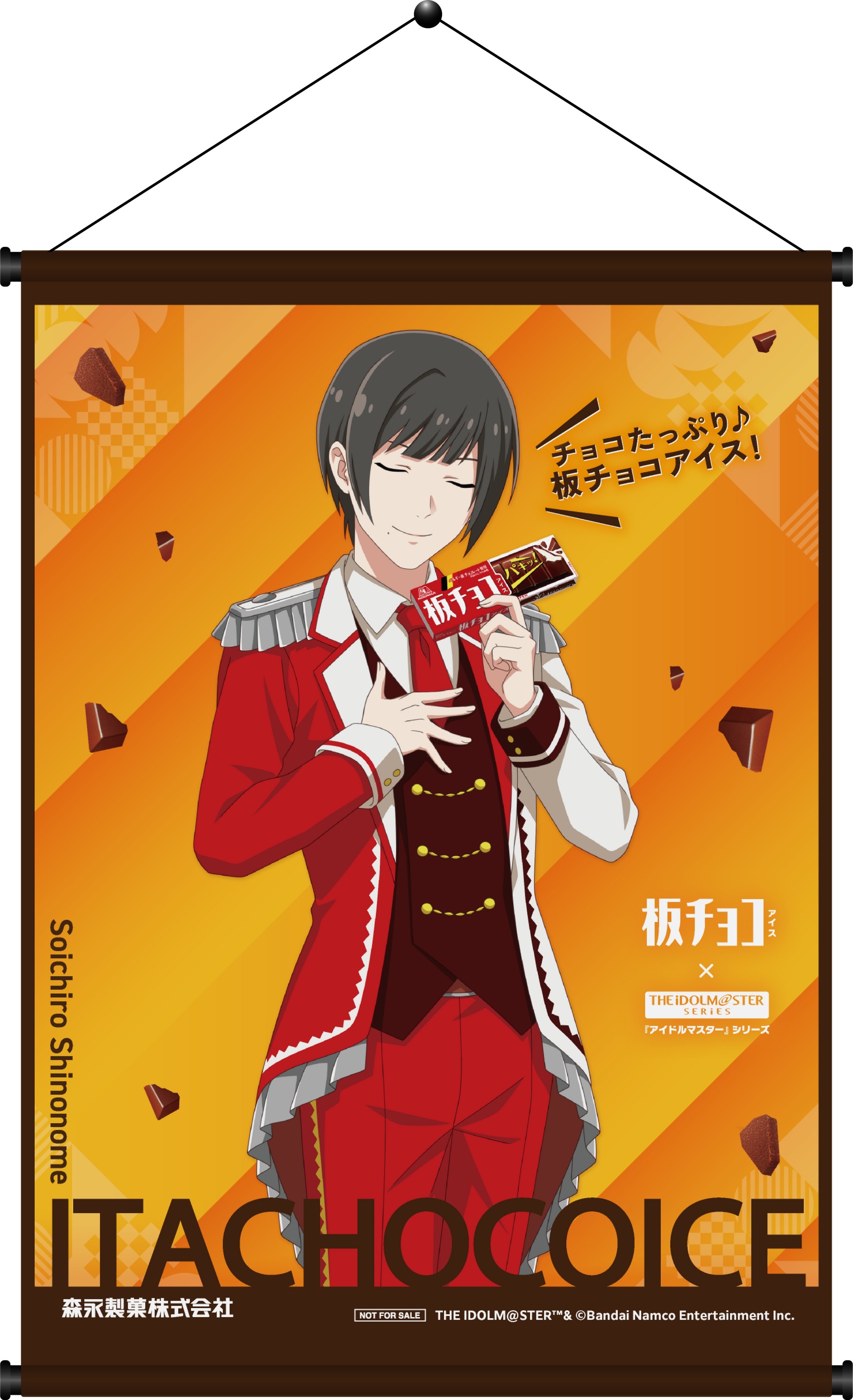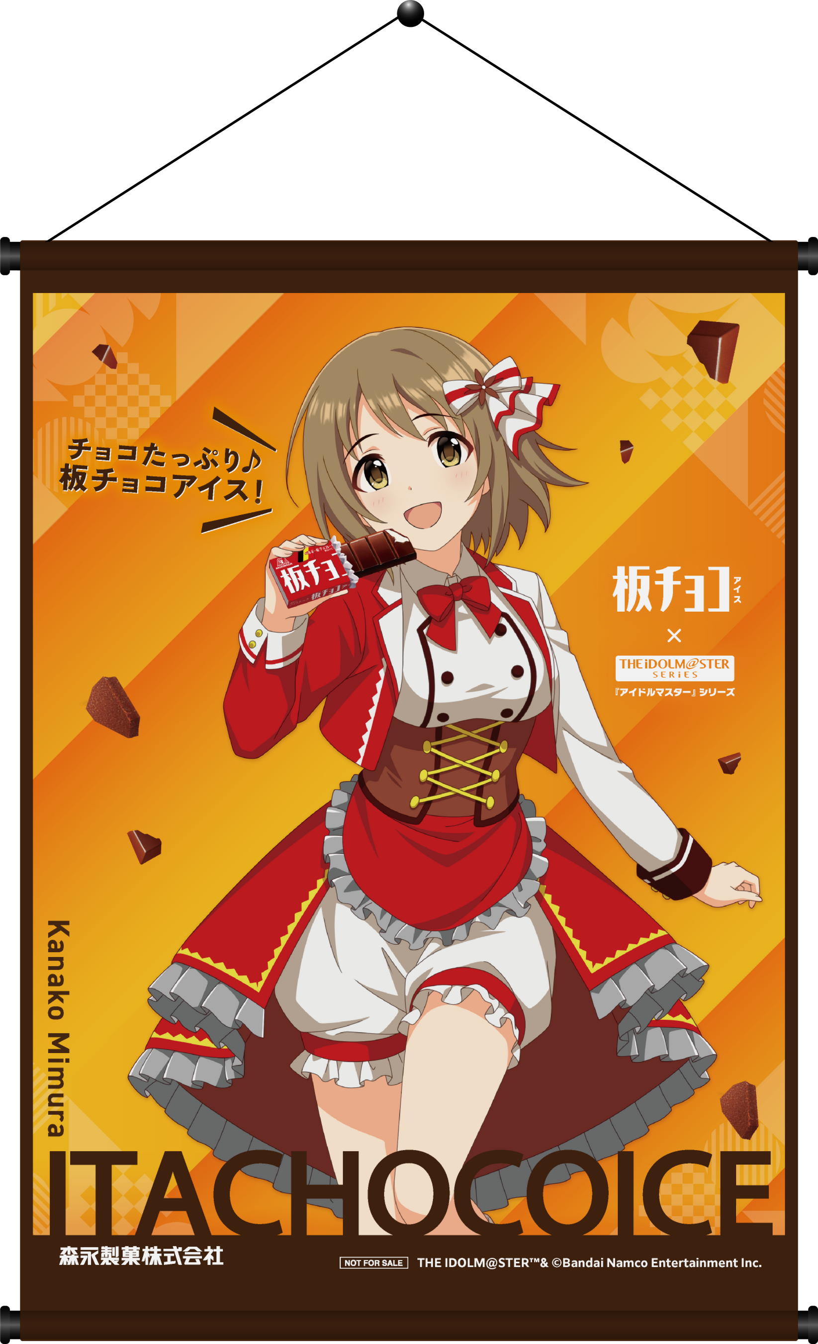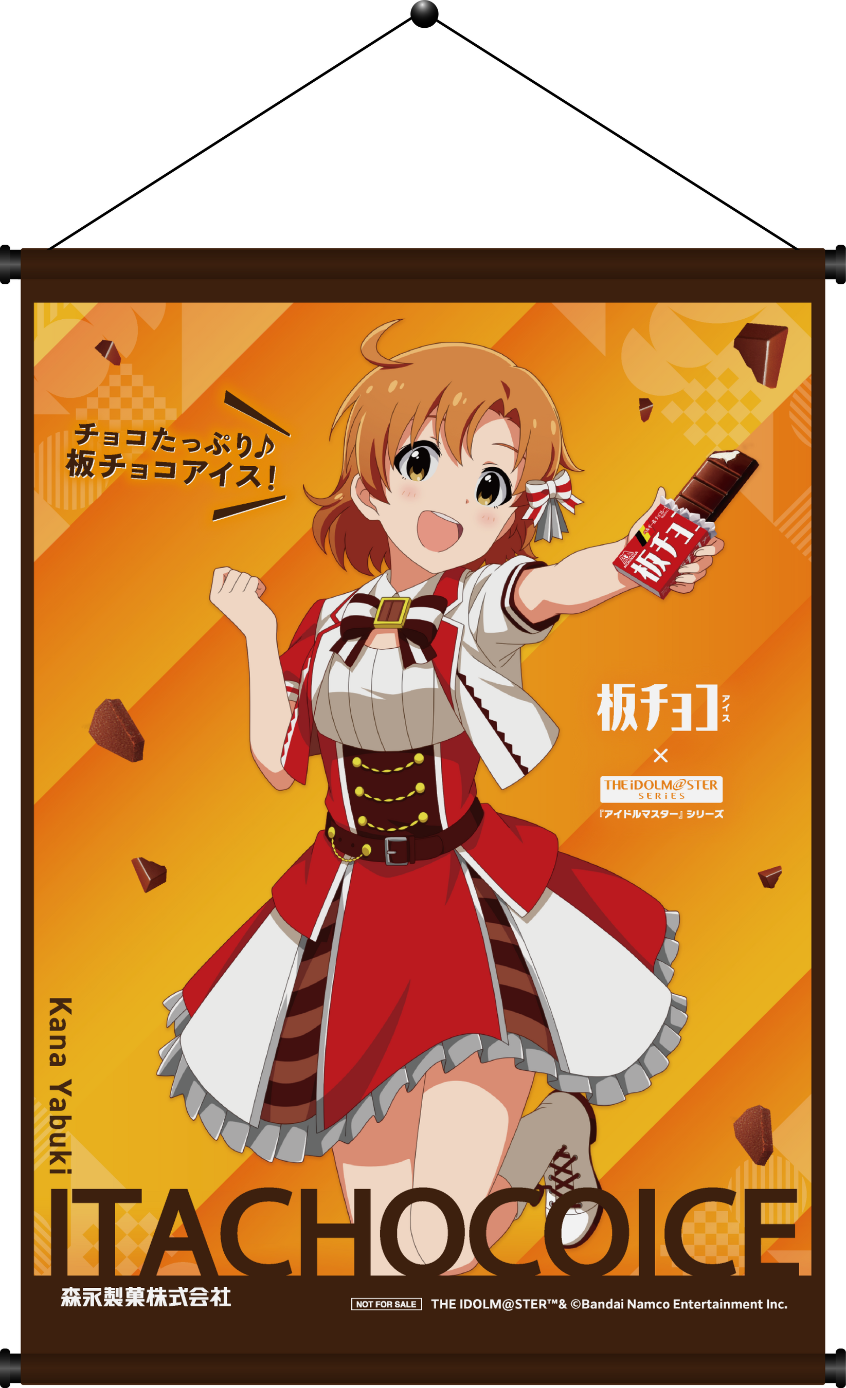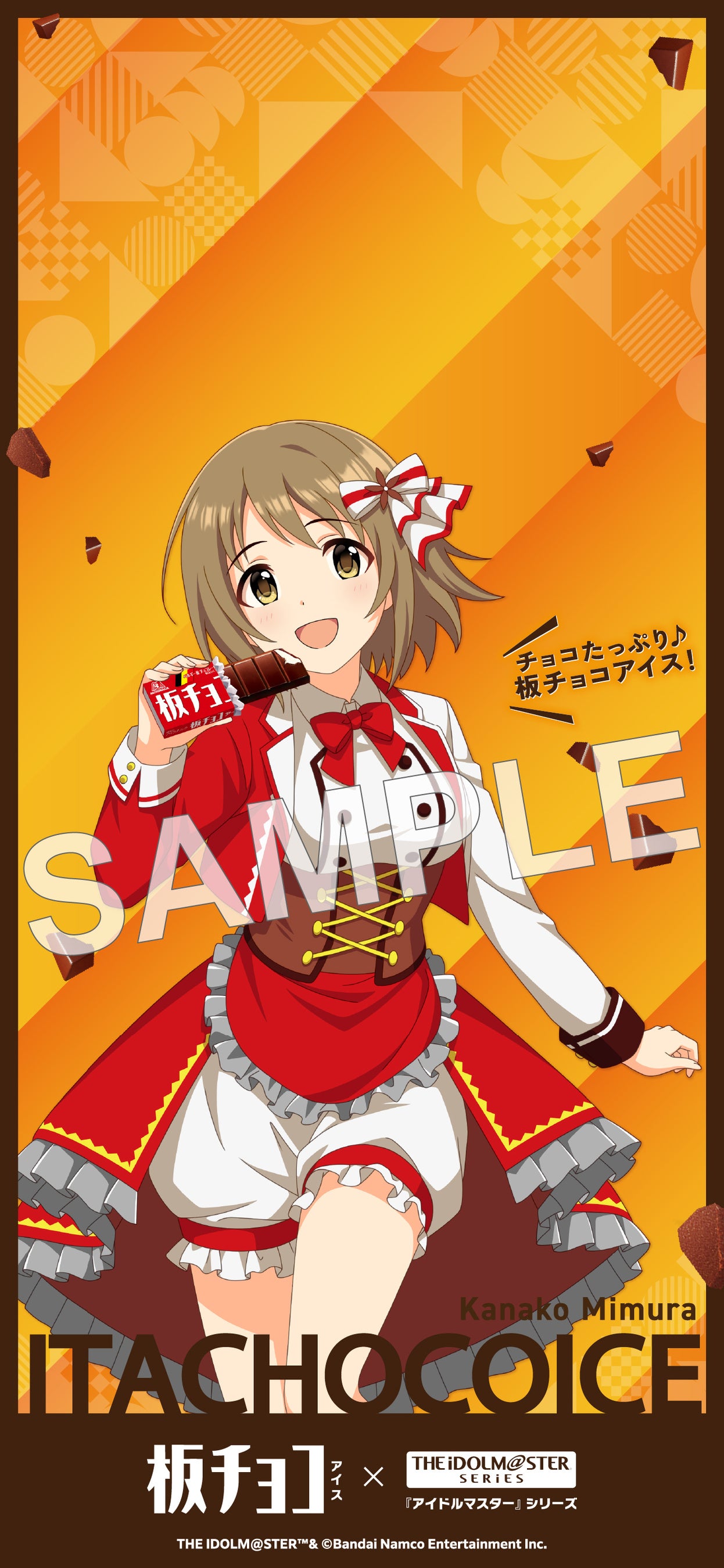 「板チョコアイス」のブランドアンバサダーに、天海春香(アイドルマスター)・三村かな子(アイドルマスター シンデレラガールズ)・矢吹可奈(アイドルマスター ミリオンライブ!)・東雲荘一郎(アイドルマスター SideM)・大崎甘奈(アイドルマスター シャイニーカラーズ)・姫崎莉波(学園アイドルマスター)の6名を迎え、「板チョコアイス」の魅力を訴求するプロモーションを展開します。