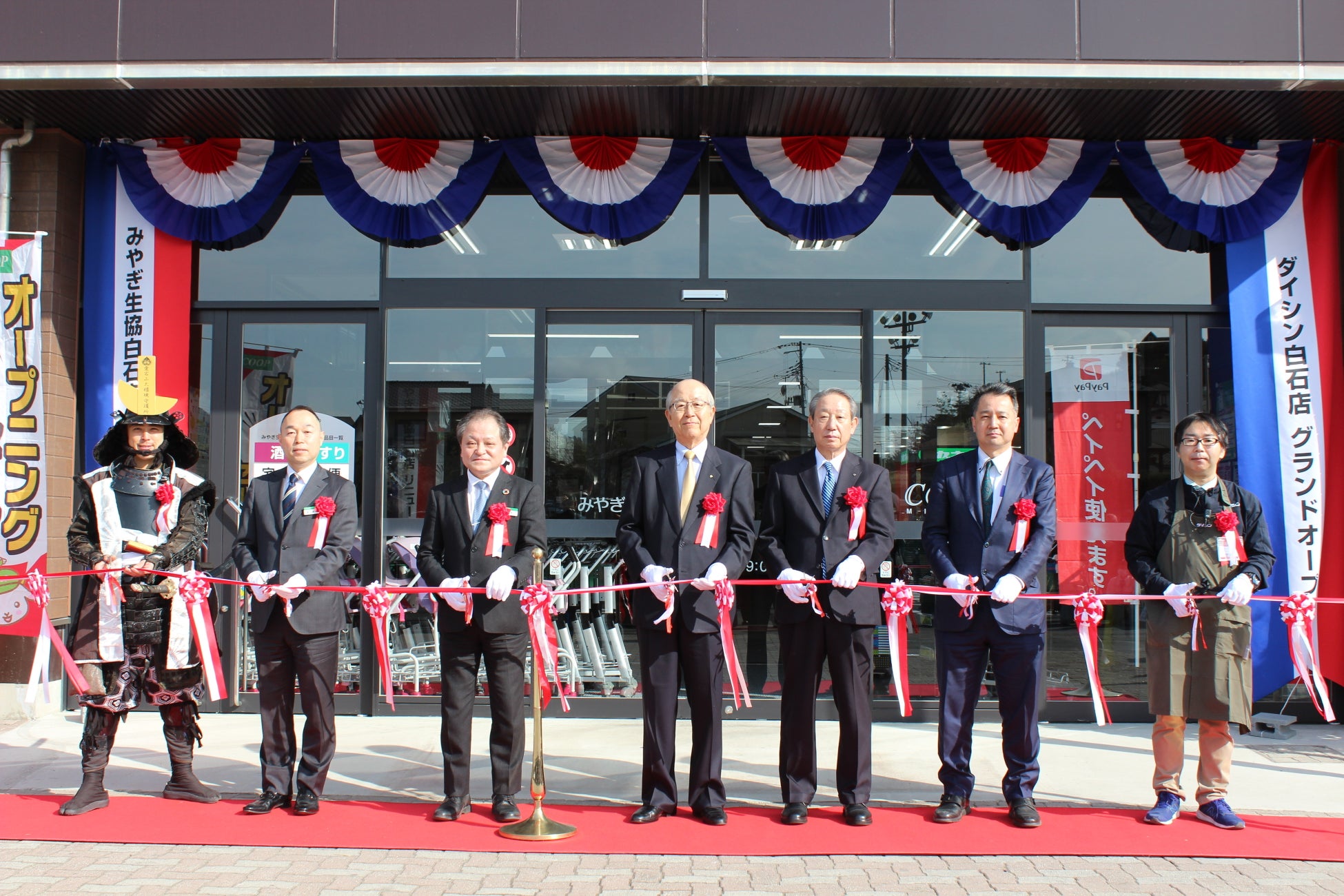 本日は、ダイシン白石店様のオープンおめでとうございます。実はみやぎ生協はダイシン様とは関わりが深く、この白石店でも共同で取り組み等ができればと考えています。非常に充実した品揃えで、白石地域の方々に様々な利便性を与えるお店になるのではないかと思っています。ダイシン様含め、他のテナントの皆さまと一緒になり、セラビ白石がこの地域の最も魅力あるショッピングセンターとしてお役に立てるよう祈念いたします。