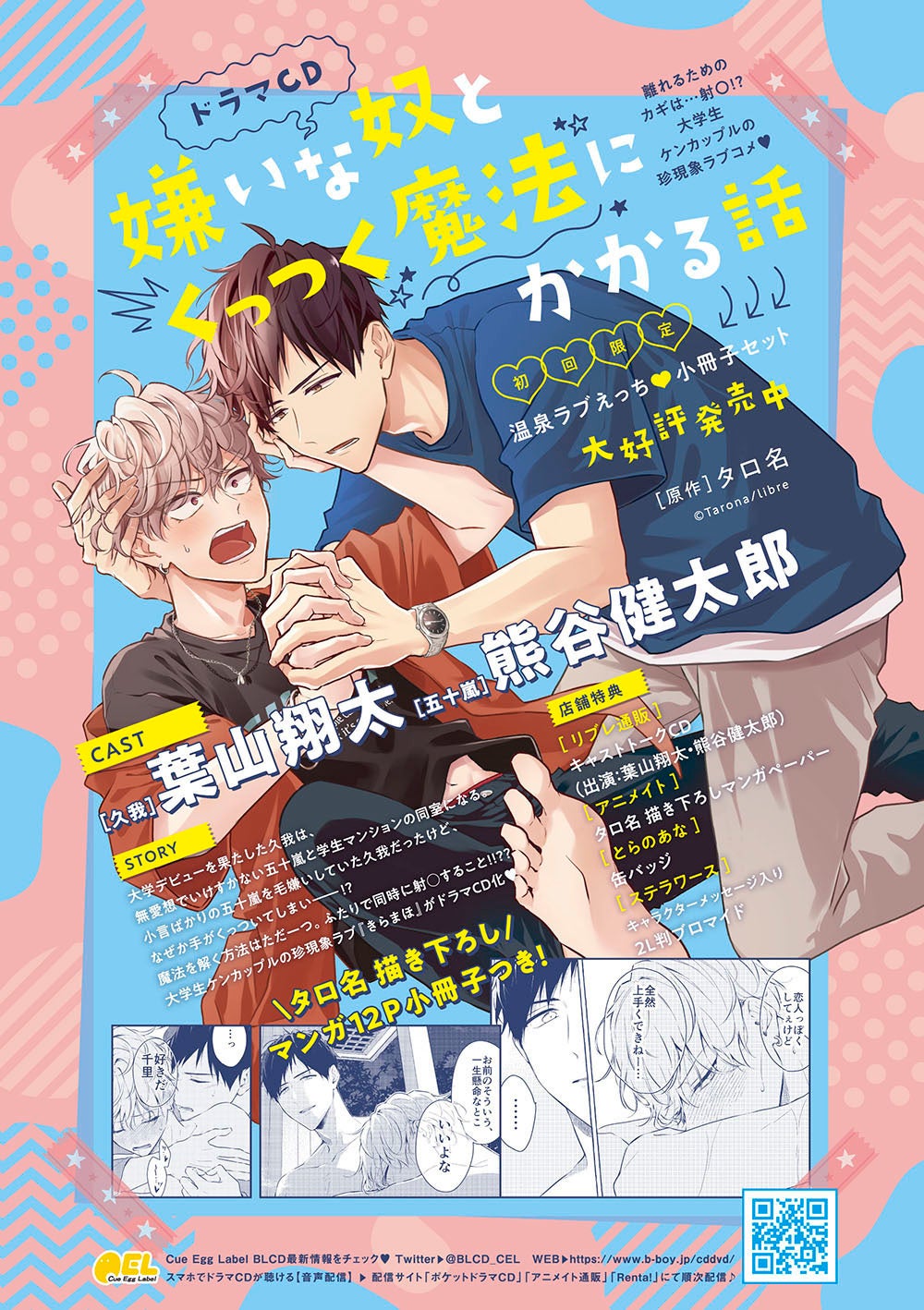 株式会社リブレ(本社:東京都新宿区、代表取締役社長:太田歳子)は、2022年7月29日(金)にドラマCD「嫌いな奴とくっつく魔法にかかる話」をCue Egg Labelより発売いたします。https://www.b-boy.jp/special/kiramaho/cd/