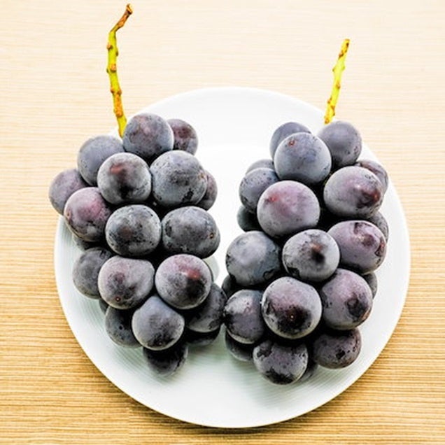 20度近い糖度で甘さ抜群の新品種オーロラブラック。プリッとした大粒な実で種がなく皮ごと食べられる!