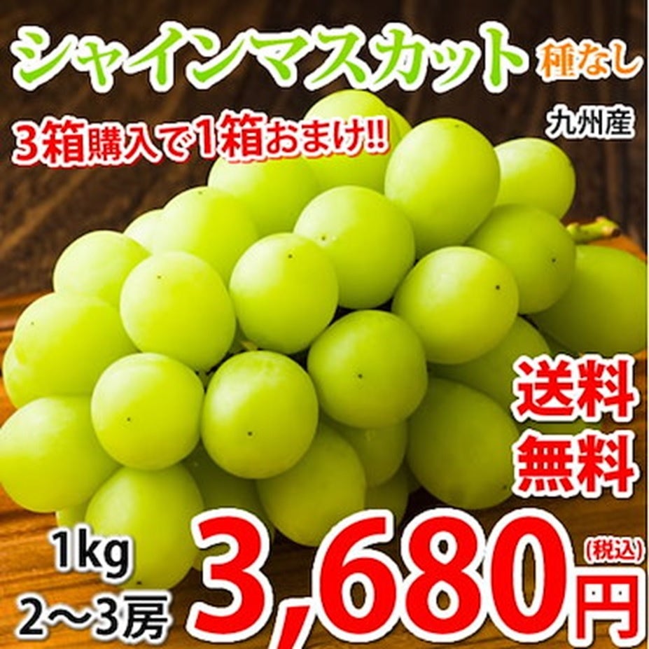 九州産の朝摘みのシャインマスカット。3箱購入で1箱おまけがついてくる!