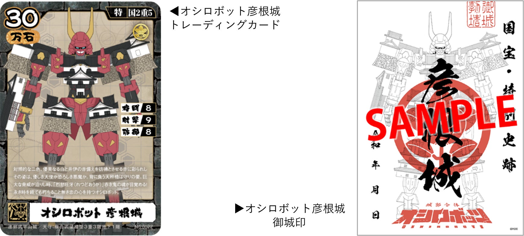 内容:トレーディングカード&解説書(チラシ)配布、オシロボット彦根城御城印販売
