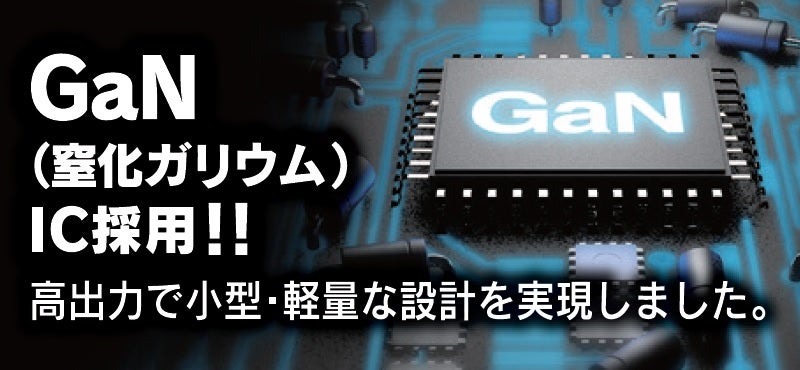 ICにGaN(窒化ガリウム)を採用することで、高出力ながら小型・軽量サイズを実現。外出や出張の際の持ち運びに便利です。