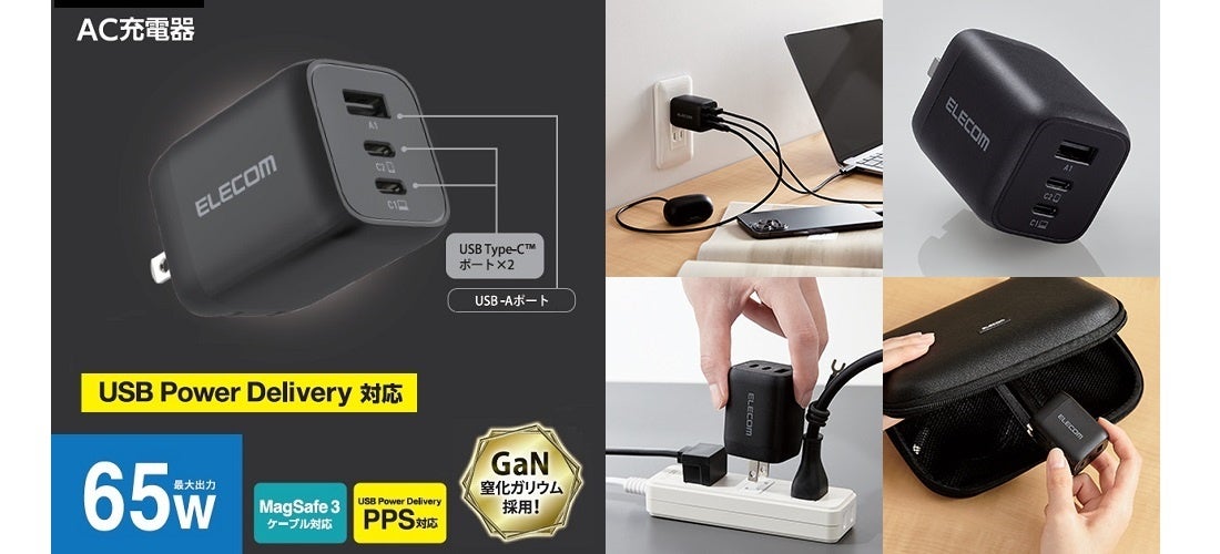 手のひらサイズなのにノートパソコンの充電も可能!USB Power Delivery 対応の多ポート搭載AC充電器 4モデルを新発売