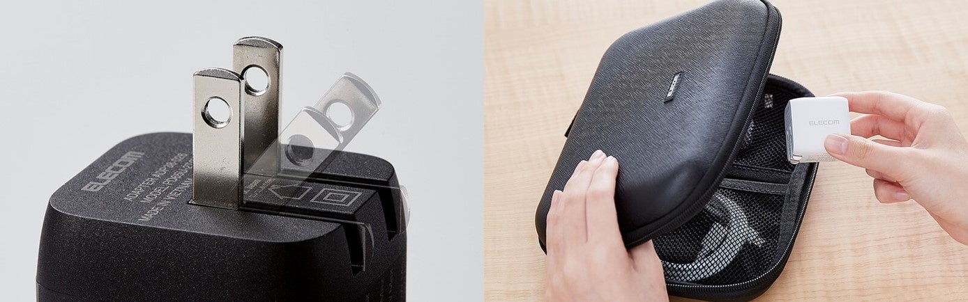 不使用時は、電源プラグを折りたたんで充電器本体に収納できます(MPA-ACCP4570BK/ACDC-PD4570BKを除く)。