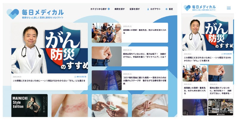 毎日新聞社(代表取締役社長:松木健)は、40代以上のミドル・シニア世代に向けた医療・健康の情報を届けるバーティカルサイト「毎日メディカル」を3月31日にリリースしました。楽しく年齢を重ねるために役立つ情報を、健康や医療の各ジャンルで活躍する医師や研究者らが紹介します。