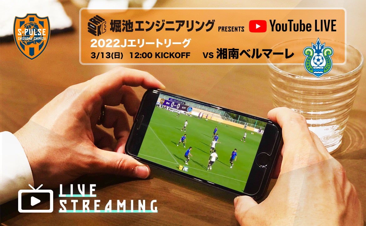 3/13『堀池エンジニアリング presents YouTubeライブ - Jエリートリーグ 清水エスパルス vs. 湘南ベルマーレ -』実施のお知らせ