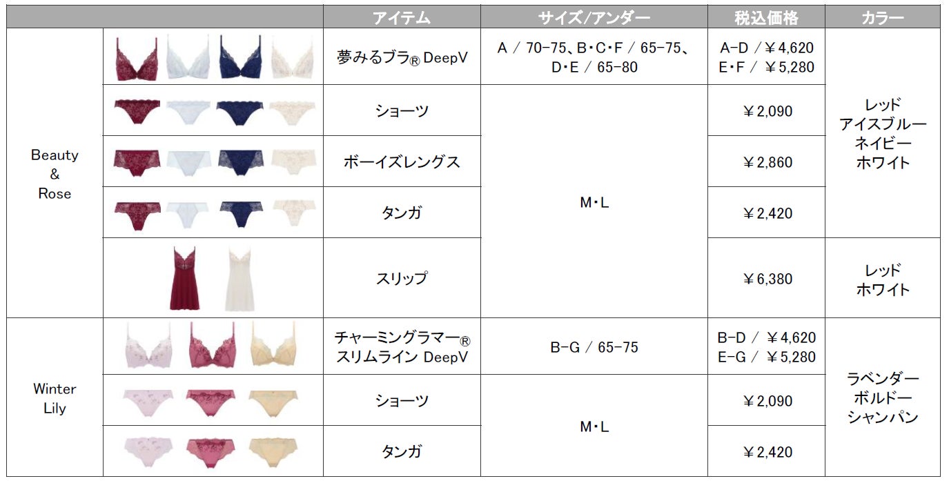 トリンプ・インターナショナル・ジャパン株式会社(本社:東京都中央区築地5-6-4、代表取締役社長:アンドリュー・ブバラ)が展開する「AMOSTYLE BY Triumph(アモスタイル バイ トリンプ)」は、ホリデーシーズンにぴったりな新作コレクション<Beauty&Rose(ビューティー & ローズ)>と<WinterLily(ウィンターリリー)>を、順次発売中です。