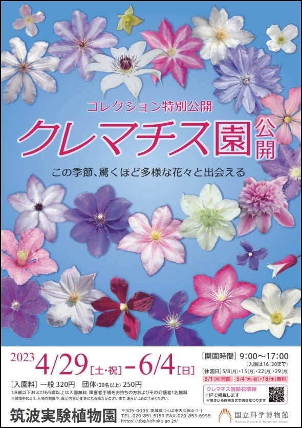 コレクション特別公開「クレマチス園公開」:https://tbg.kahaku.go.jp/event/2023/04clematis/