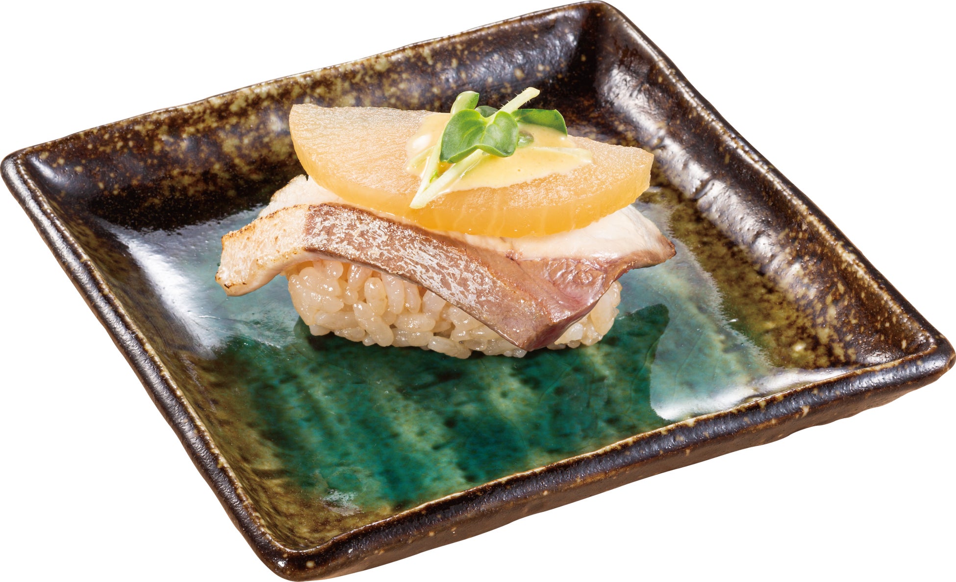 その他にも、とろりとした食感の白子をアヒージョの具材にすることで、白子のクリーミーさが引き立つ「白子のアヒージョ」やおでんの大根と炙ったぶりを合わせ、“ぶり大根”を寿司で再現した「ぶりと大根」、厚切りのぶりをさっぱりとお楽しみいただける「厚切り 炙りぶり 鬼おろしぽん酢」などの商品も登場します。