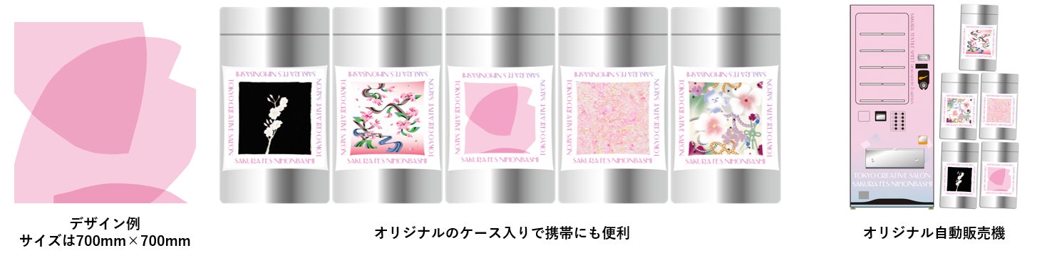 東京クリエイティブサロン日本橋2024のコンテンツとして一般発売する「SAKURA TEXTILE SHEET by 東レ senbism」は、イベントのコアクリエイティブとして5名のクリエイターがデザインした「SAKURA TEXTILE」を、日本橋に本社を構える東レ株式会社の最先端の繊維素材「senbism」にあしらったマルチシートです。日本橋エリア内3か所に設置する自動販売機と、COREDO室町テラス 大屋根広場にて実施する「SAKURA TEXTILE PARK」にて販売します。お花見の雰囲気を壊さないレジャーシートとしてはもちろん、風呂敷や手ぬぐいなどにも使用でき、桜色のデザインが日本橋の春を彩ります。
