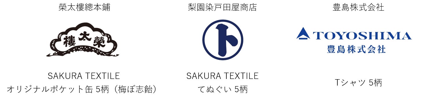 販売場所:各コラボ店舗(梨園染戸田屋商店、榮太樓總本鋪)、豊島株式会社のECサイト、SAKURA TEXTILE PARK