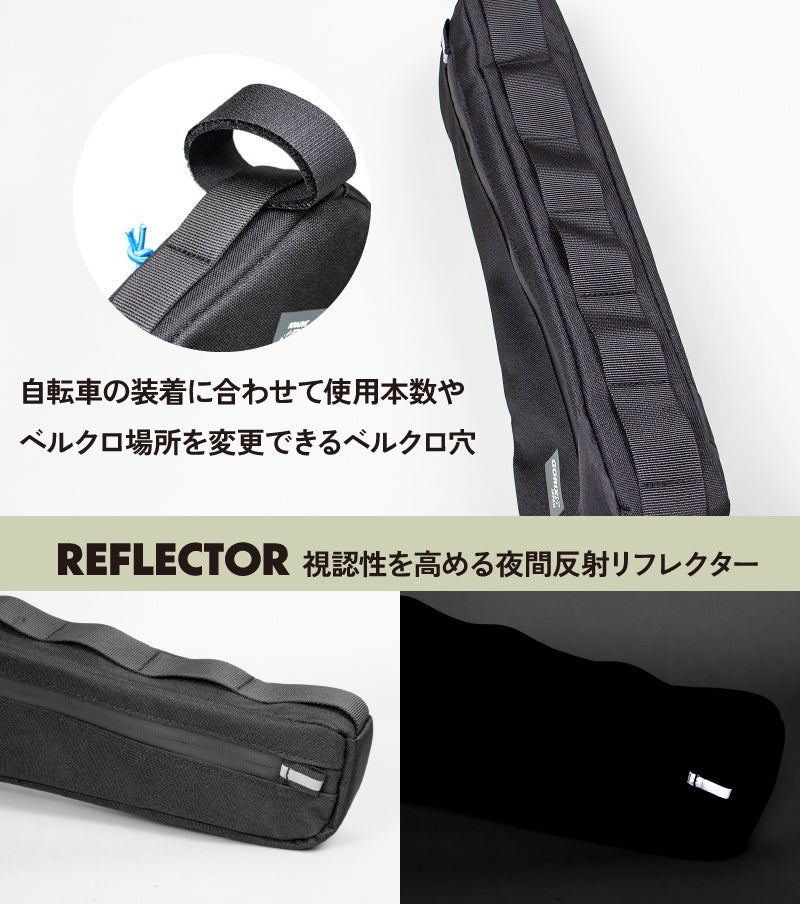 ツーリングや長距離のロングライド、自転車旅、普段の街乗り、自転車通勤など様々なシーンで大活躍する便利なバッグです。