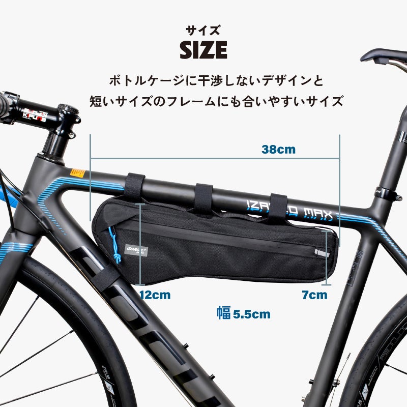 [ボトルケージを邪魔しないフレームバッグ]